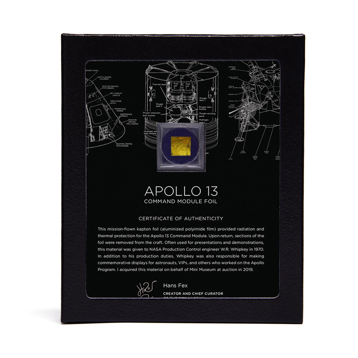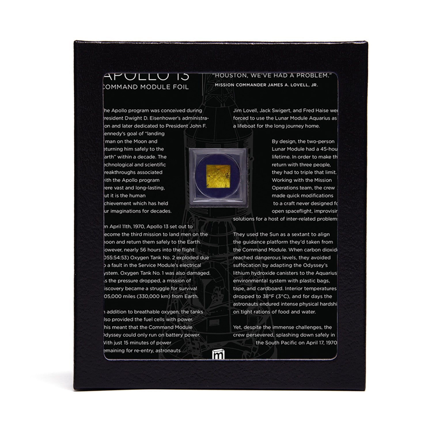 The foil square is 100 times larger than our original Apollo 13 foil specimen. As such, this is an incredibly exclusive collector's item. We recommend treating it with upmost care.