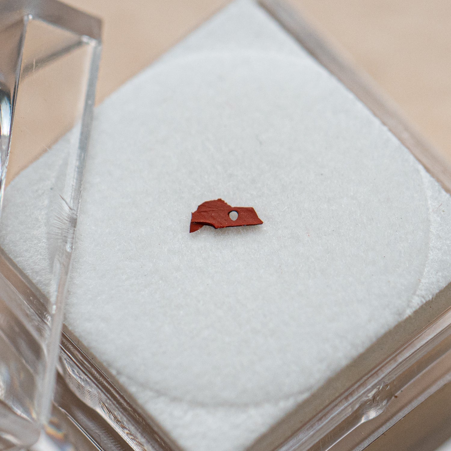 Due to the age and elastic nature of this material, specimens will vary in shape and size. The approximate surface area measures 1-2mm x 2-5mm.