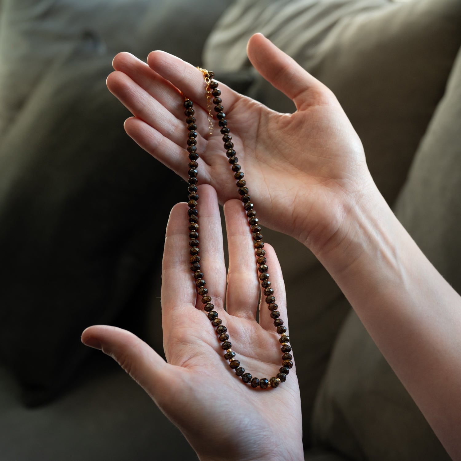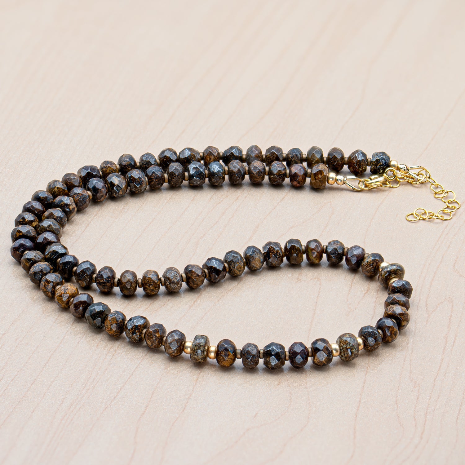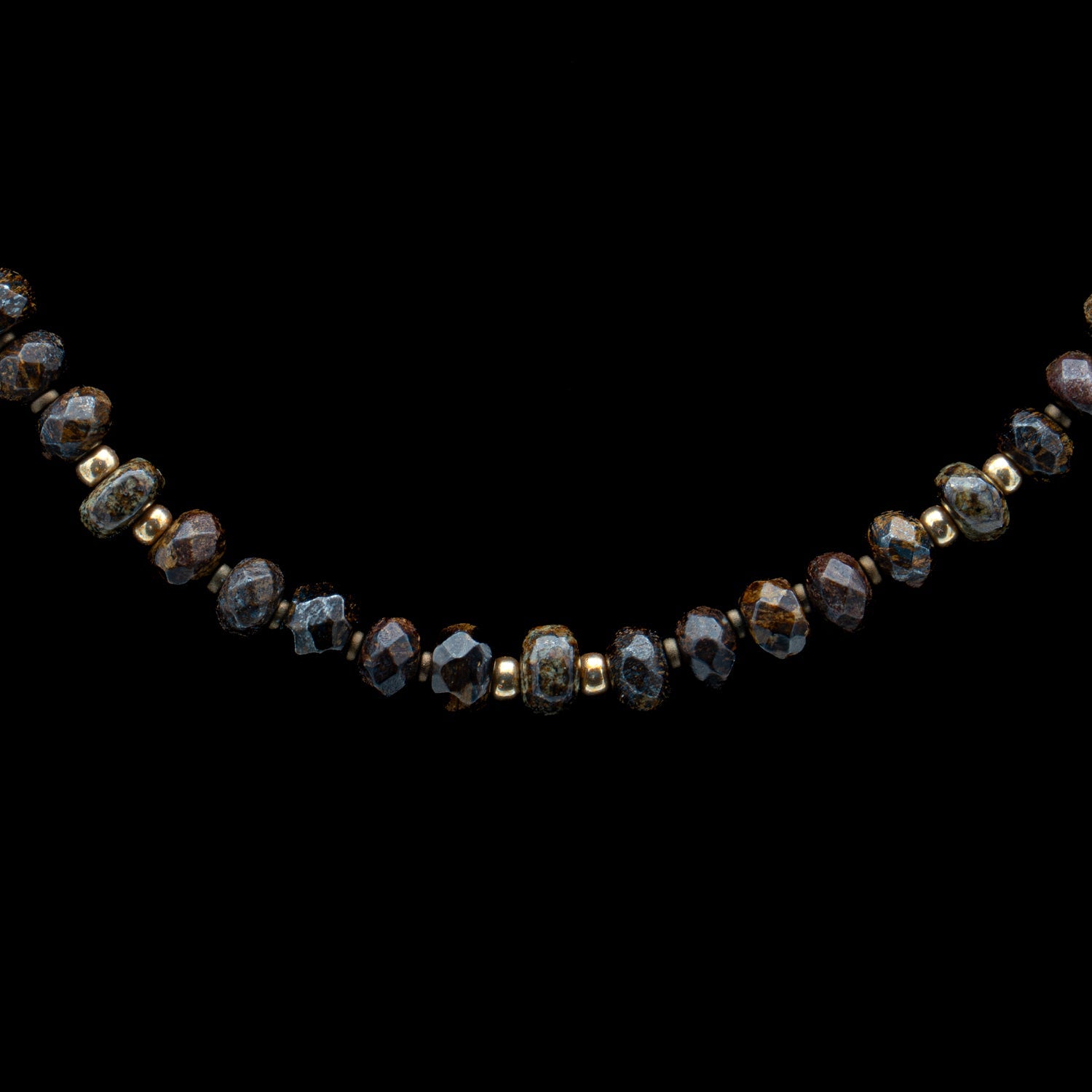This necklace, made right here at Mini Museum contains three meteorite beads made with material from Chondritic Meteorite NWA 869, an ancient meteorite that dates back over 4,500,000,000 years.