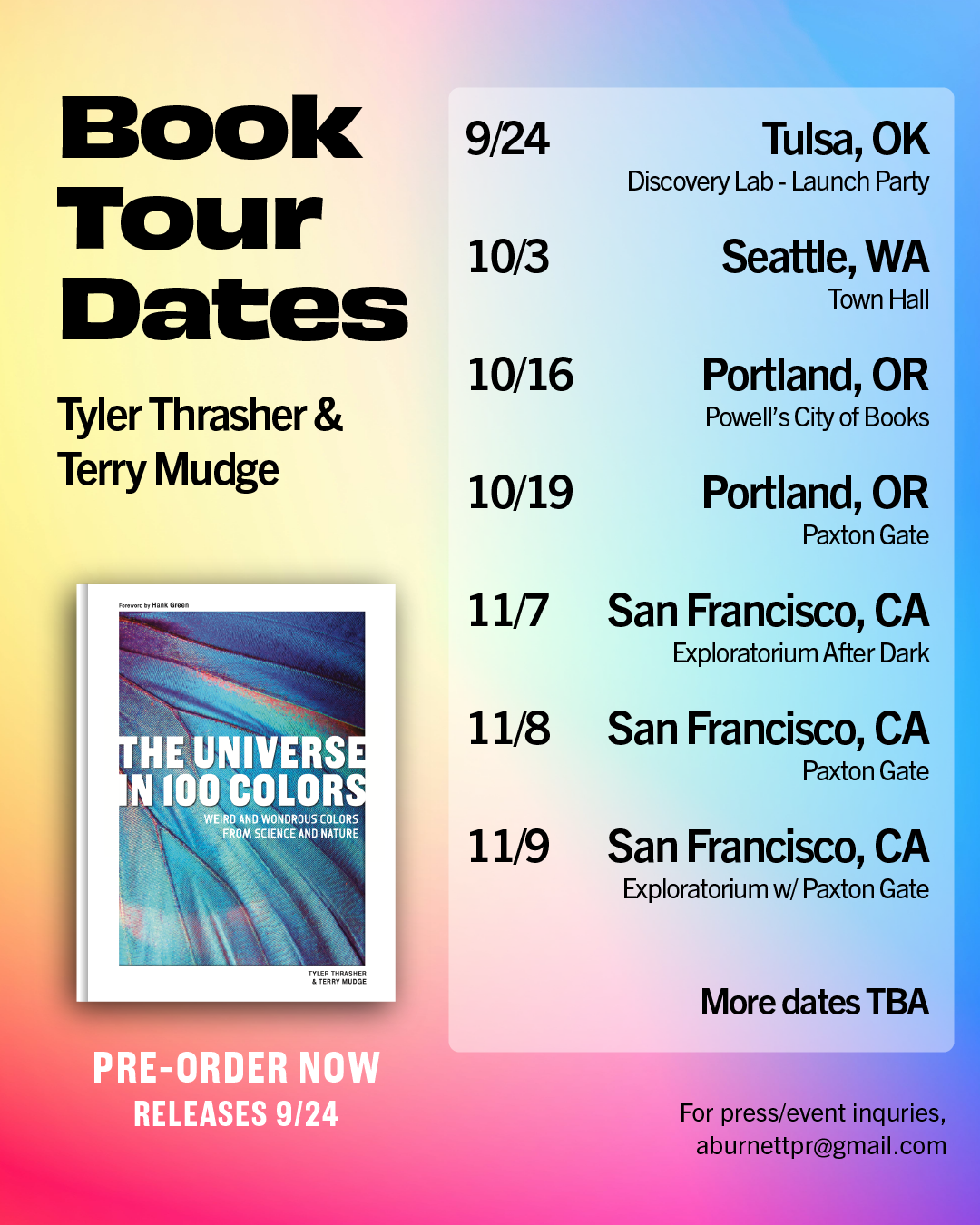 Come to one of our events to hear the authors discuss the science of some of the strangest colors, and get your copy of The Universe in 100 Colors signed!