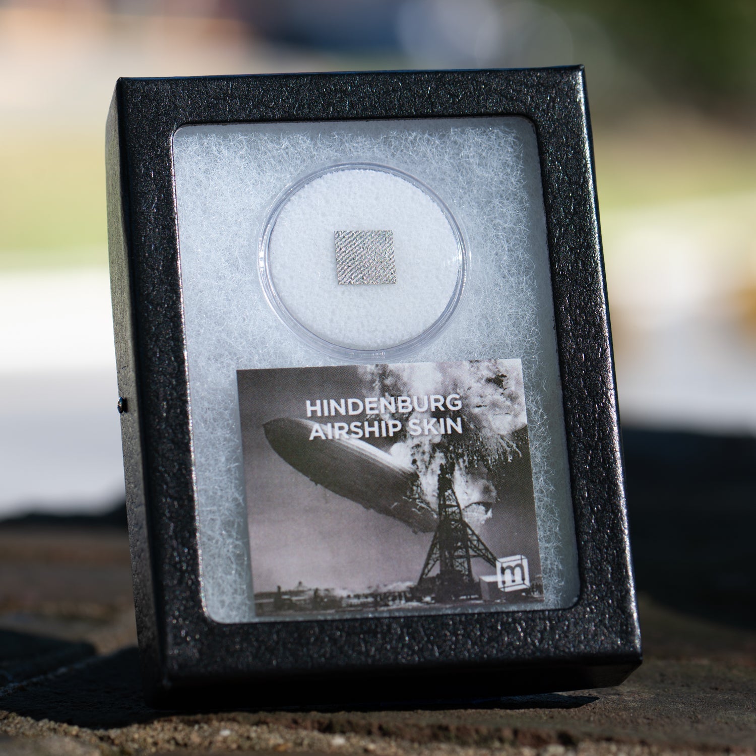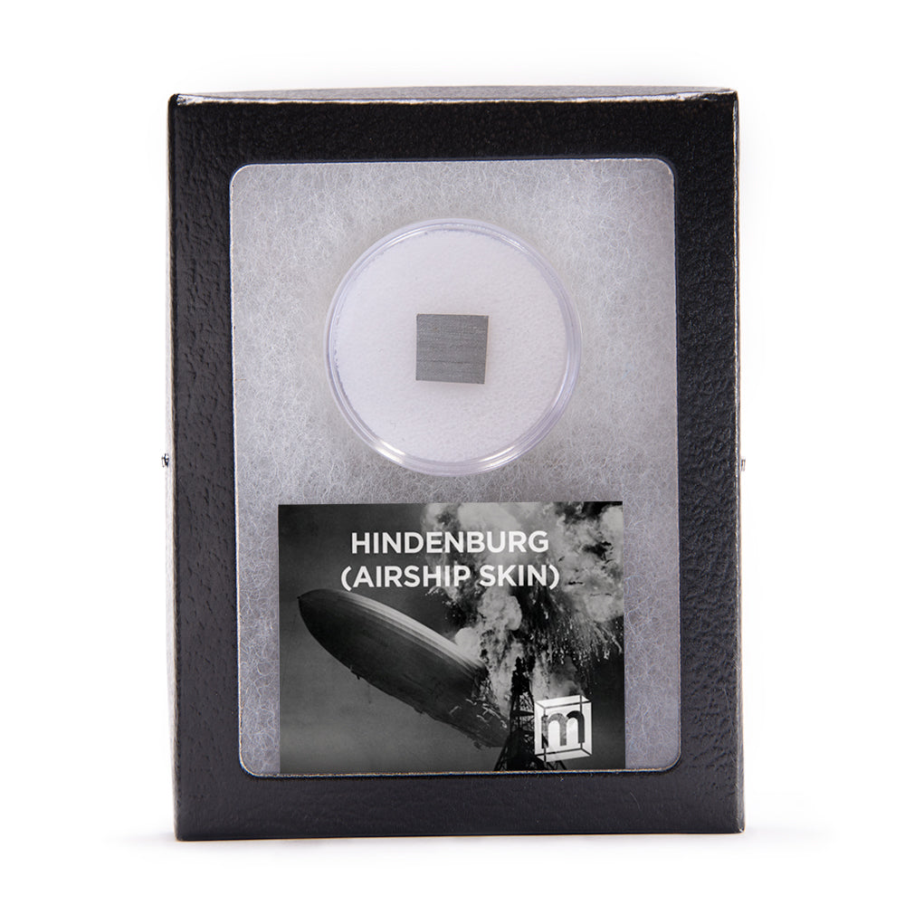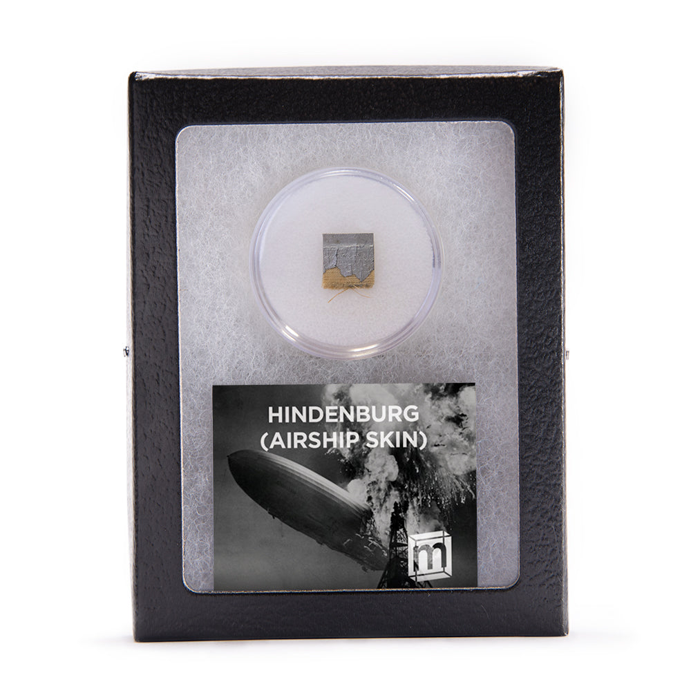 This specimen is a swatch of canvas fabric from the airship skin of the Hindenburg. The specimen was acquired from one of the largest private collections of Hindenburg artifacts in the world. It was originally retrieved at the scene in 1937 by journalist Harry Kroh, a local reporter dispatched to cover what was expected to be a routine landing but turned into one of the most well-covered disasters in history.