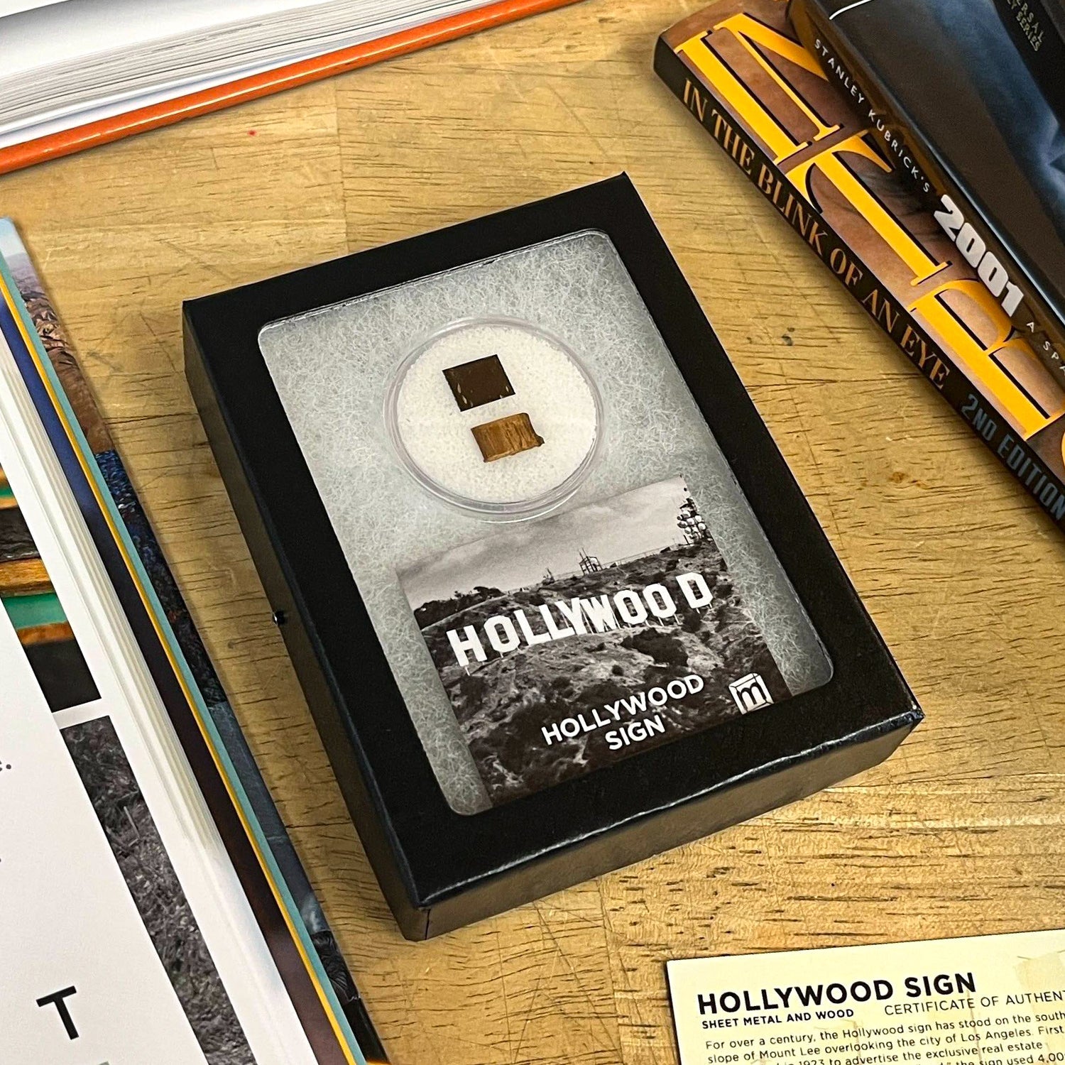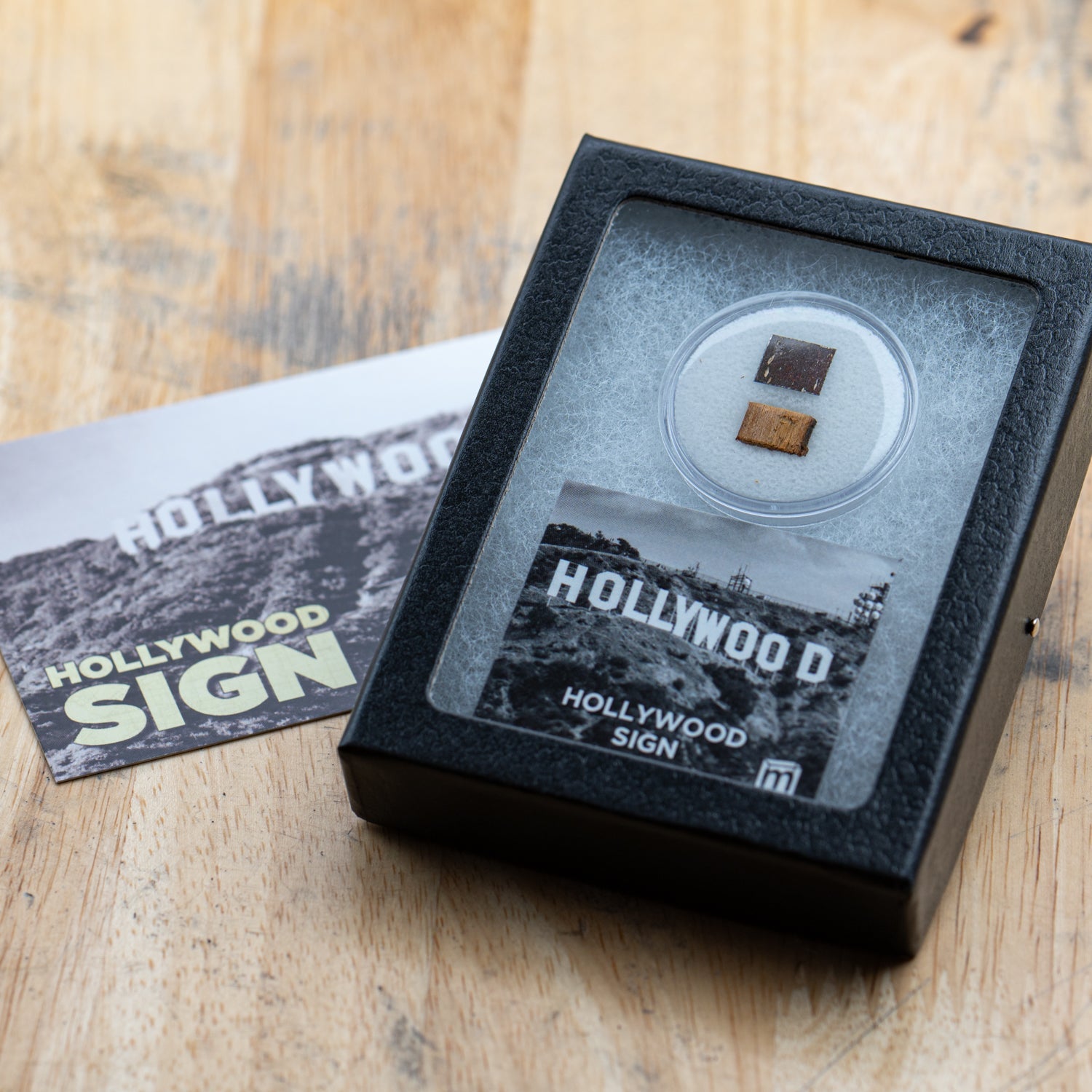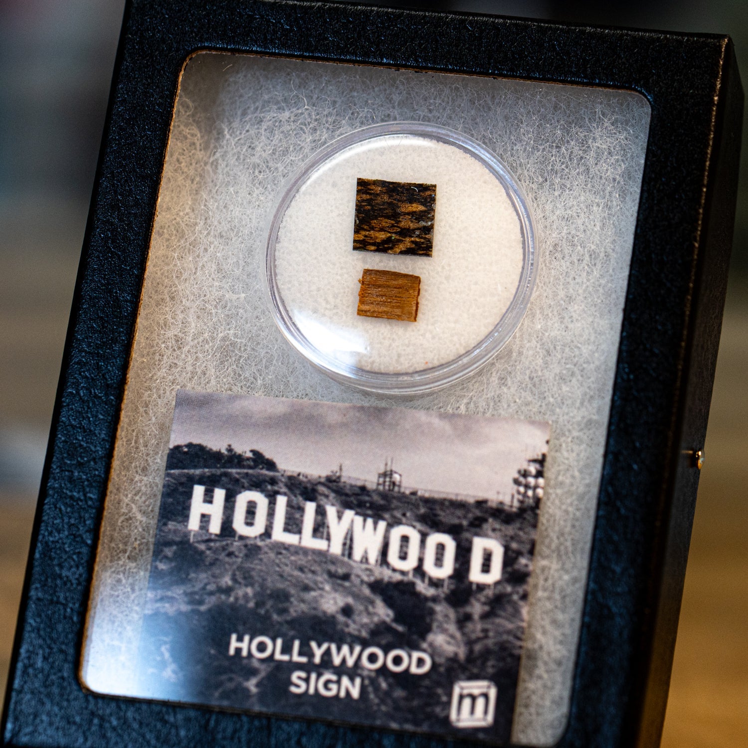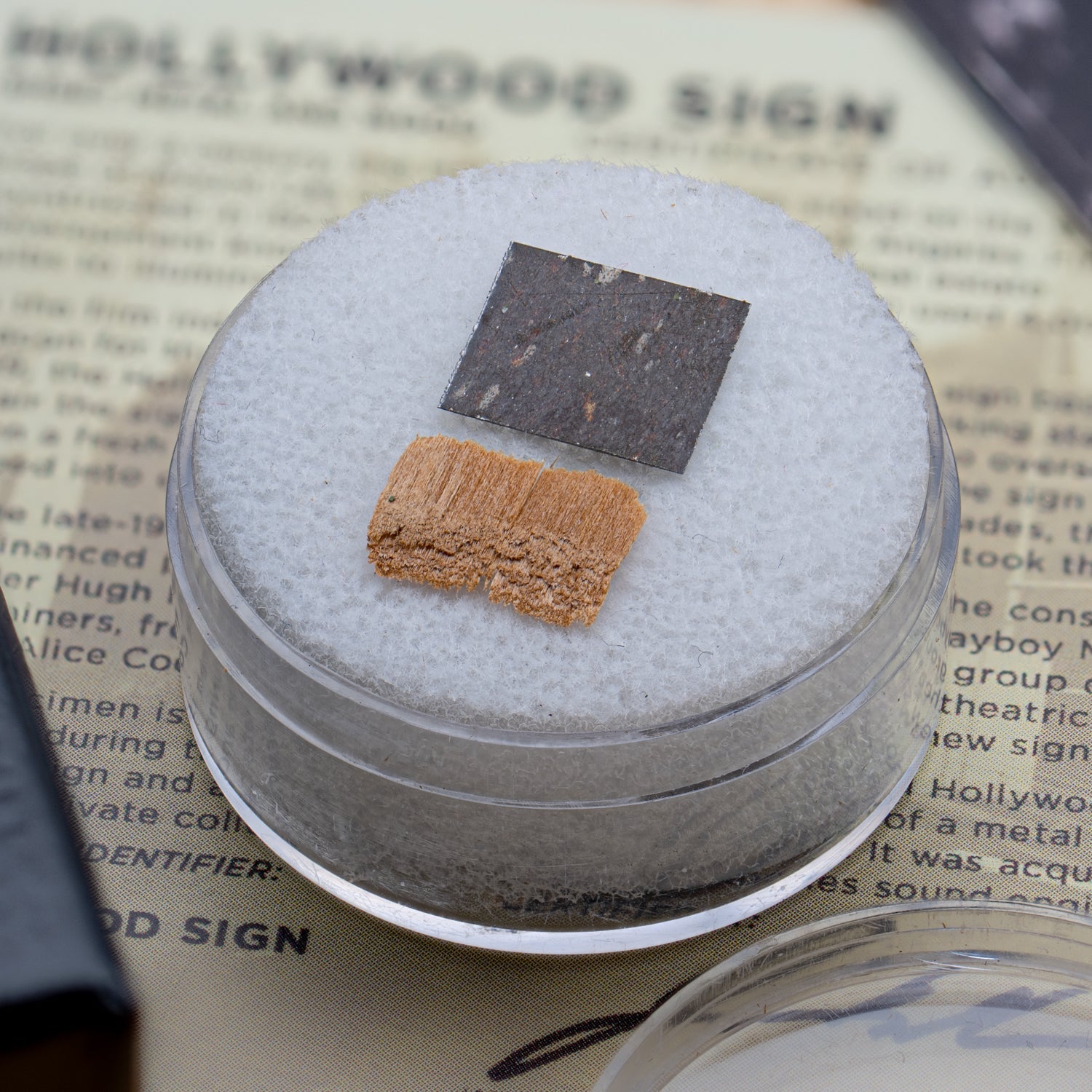 This specimen consists of two samples from the original 1923 sign salvaged during the reconstruction: a piece of metal from the lettering, and a piece of wood from the support beams that held up the sign. The material was acquired from the private collection of a retired LA sound engineer. Together they stood alongside each other for over fifty years before being salvaged in the 1970s reconstruction effort.