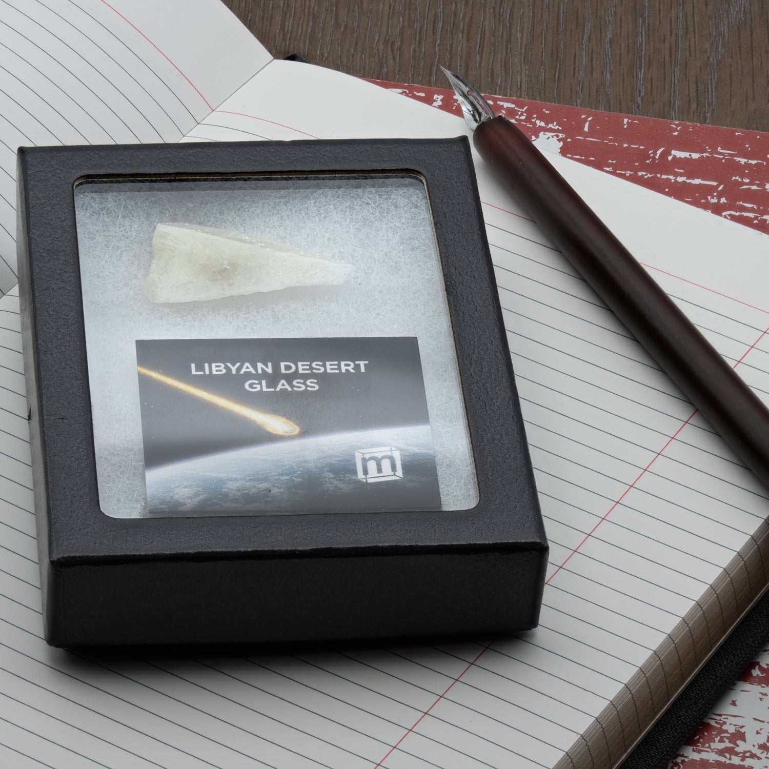 In the southeastern spur of North Africa’s Great Sand Sea, there are several fields of luminous, yellow-green glass known as Libyan Desert Glass (LDG). Due to the lack of any visible impact crater, the most likely source is a low-density asteroid or comet airburst explosion leading to the fusion of silica-rich sands roughly 28,500,000 years ago.