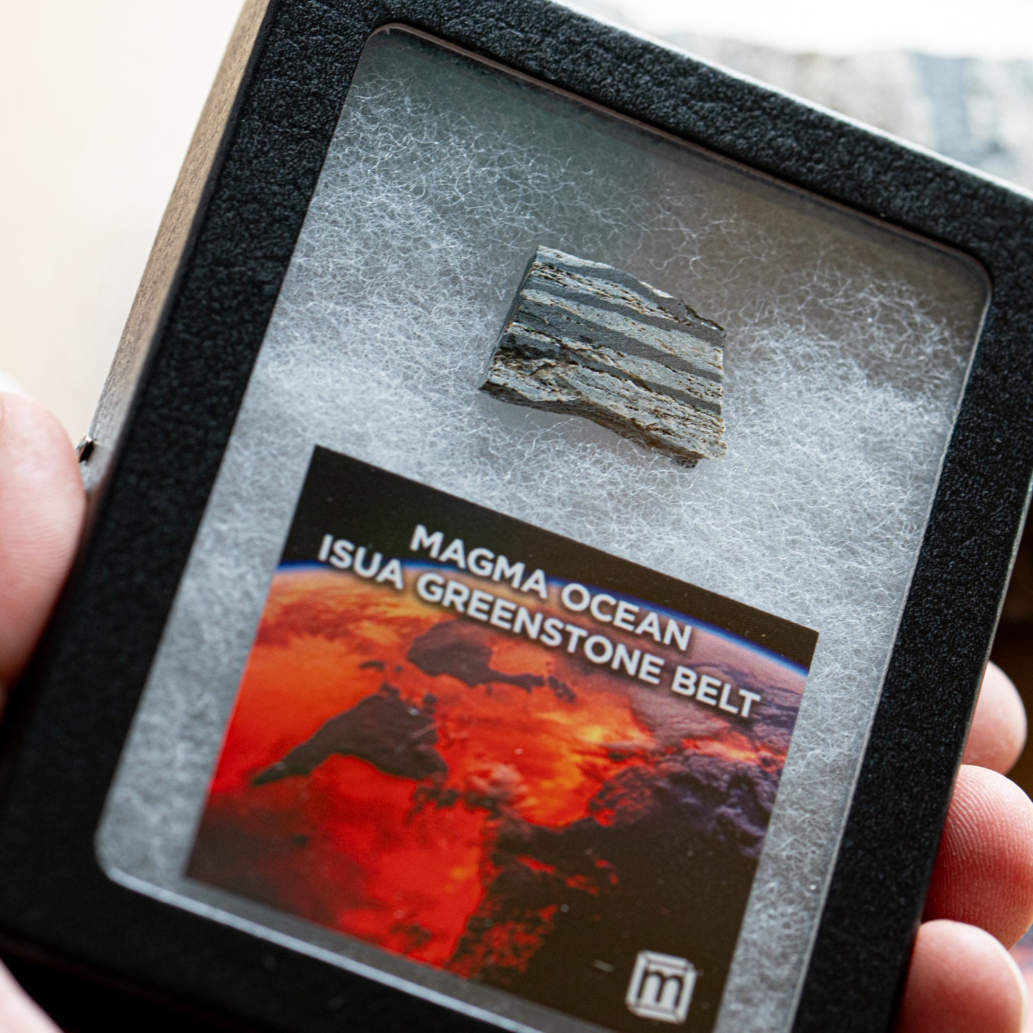 This specimen is a piece of rock from the Isua Greenstone Belt in Greenland. Within this formation are some of the earliest traces of Earth, from the time our planet was covered in fire. First appearing in the Fifth Edition, we're excited to debut the Magma Ocean as a solo specimen!
