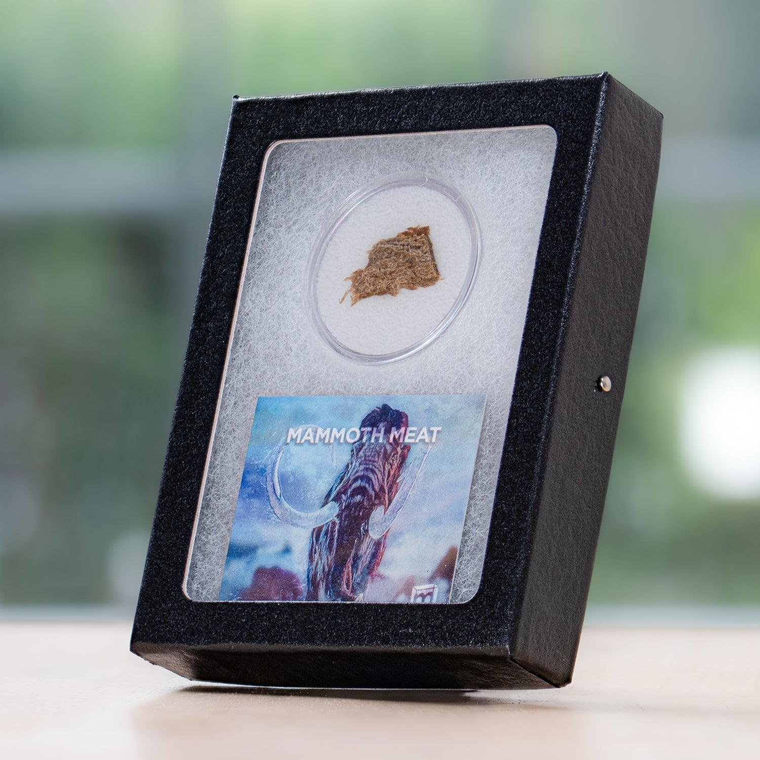 This specimen is a fragment of a woolly mammoth muscle tissue, radiocarbon dated to 19,551 years old. The specimen comes from a well-preserved wooly mammoth leg discovered near the Indigkra River in Siberia, Russia. It first appeared in the Second Edition of the Mini Museum. We're pleased to offer it once again as a single specimen.