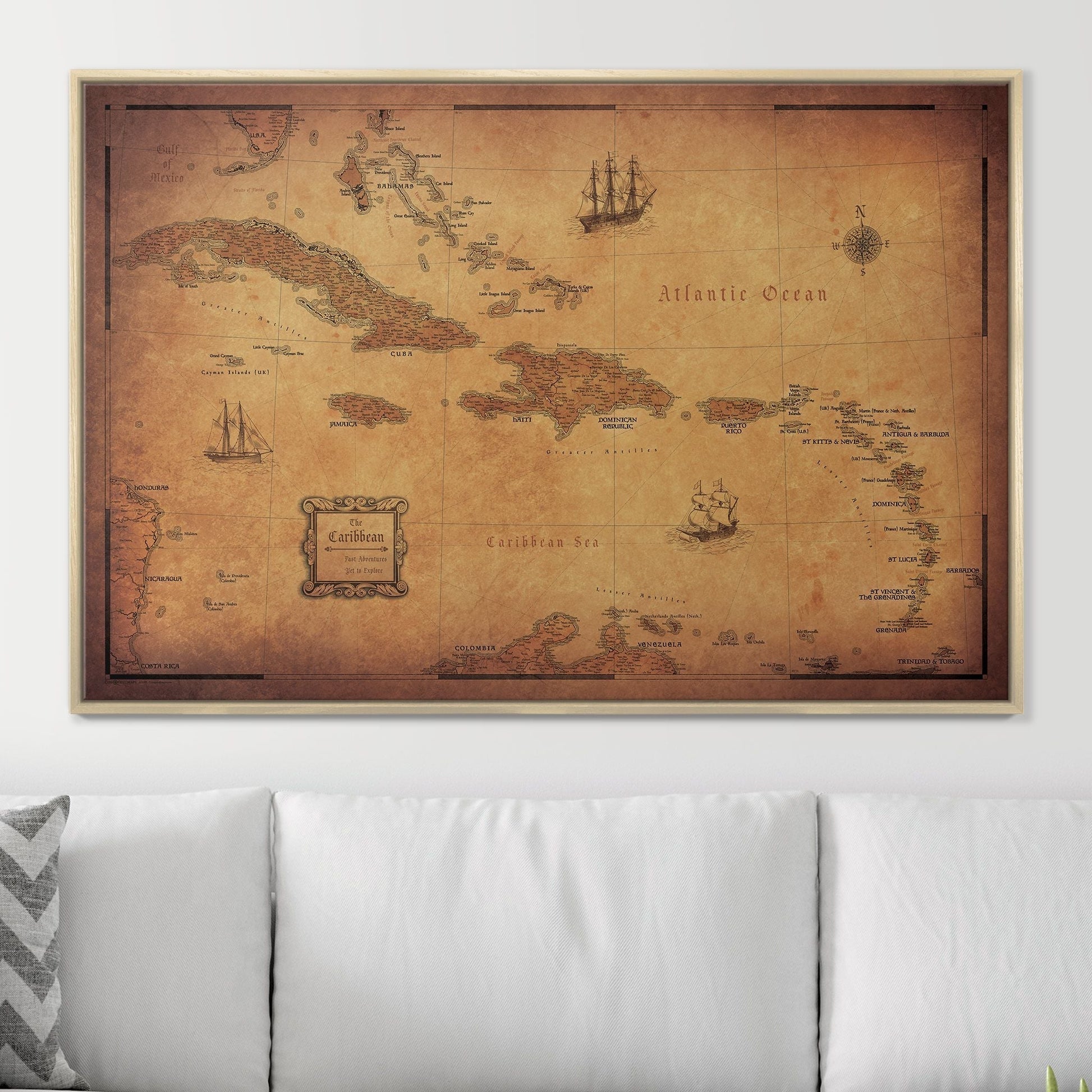 Push Pin Caribbean Map: Golden Aged (Pins Included)