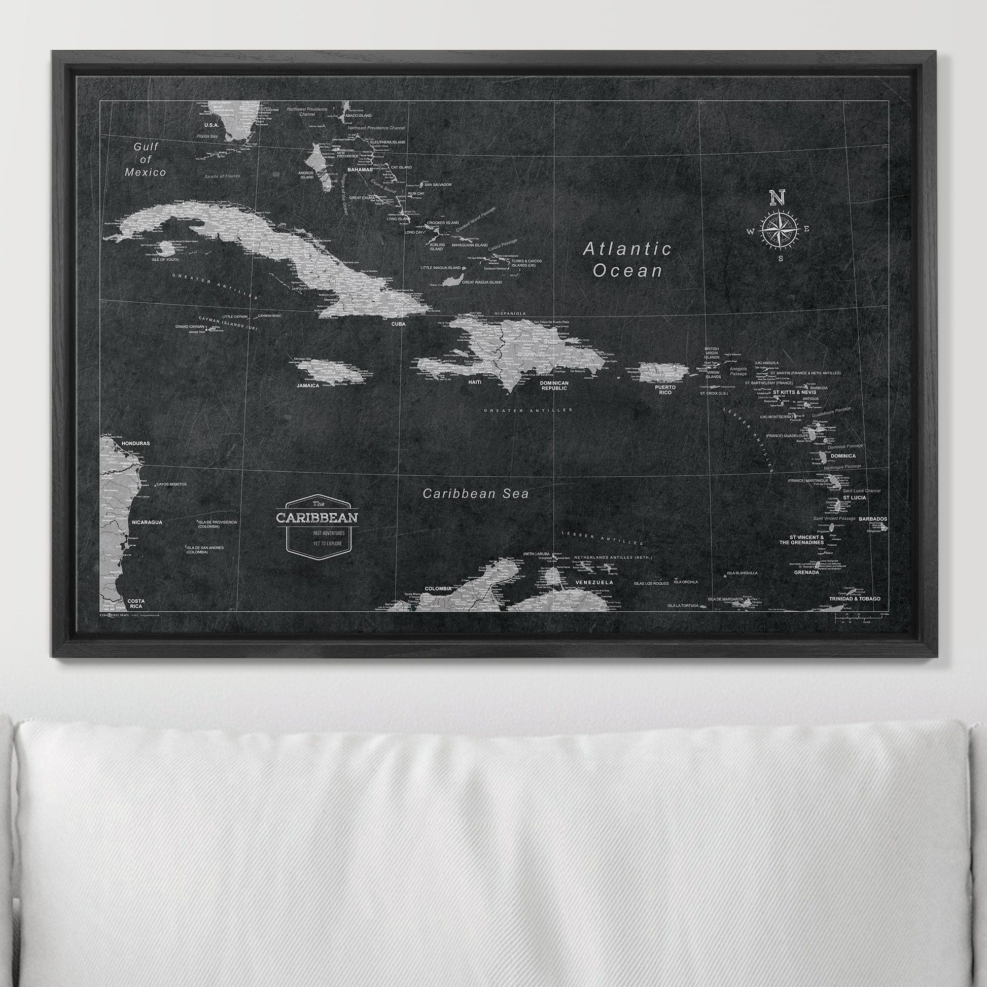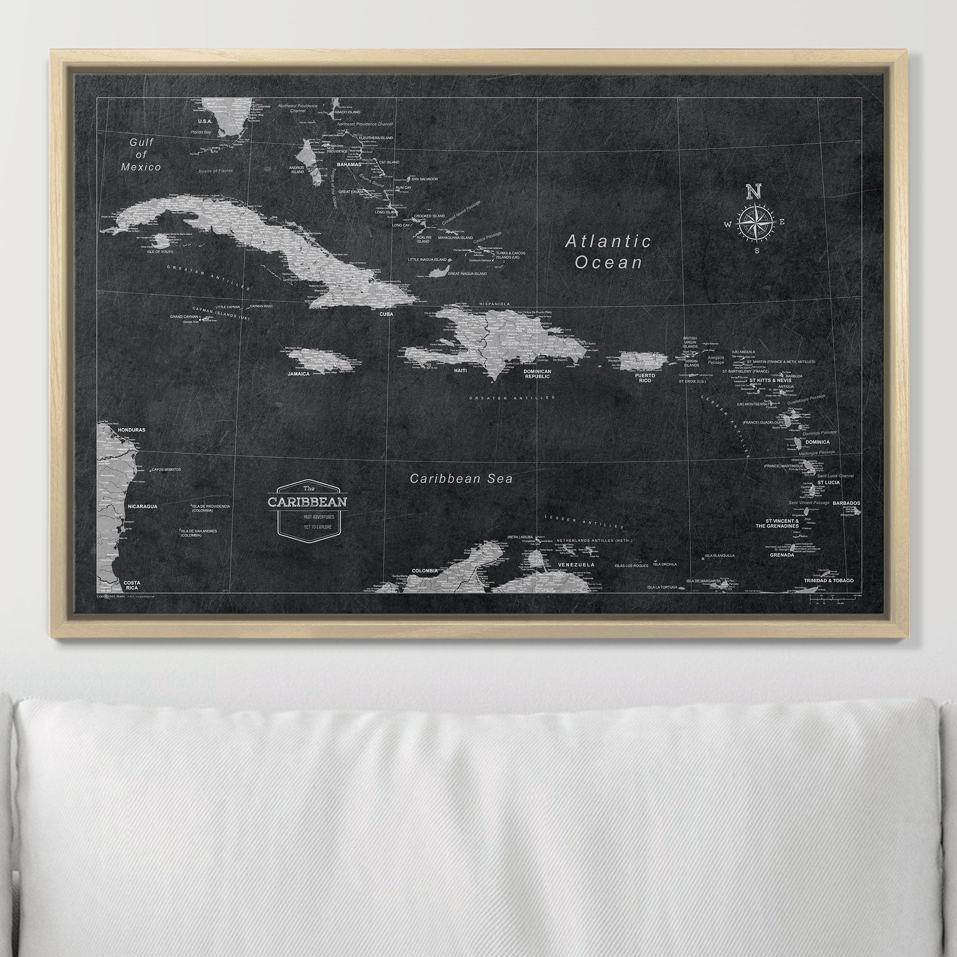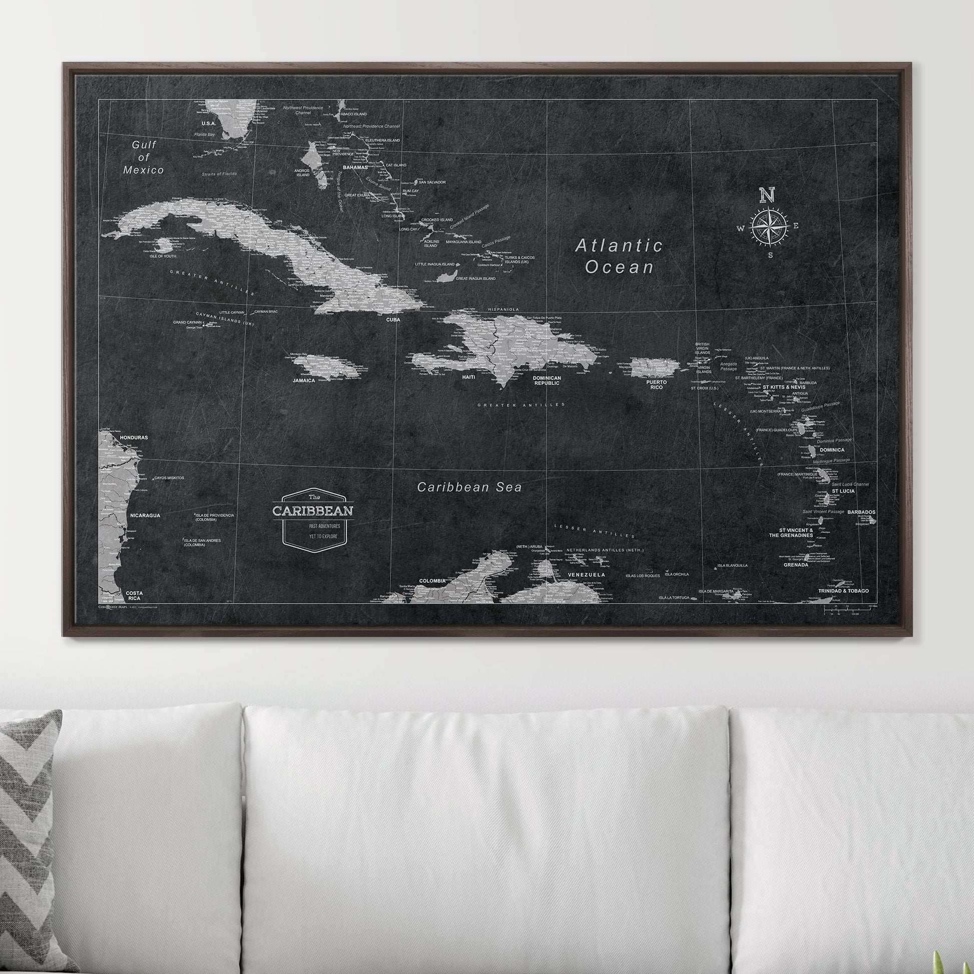 Push Pin Caribbean Map: Modern Slate (Pins Included)