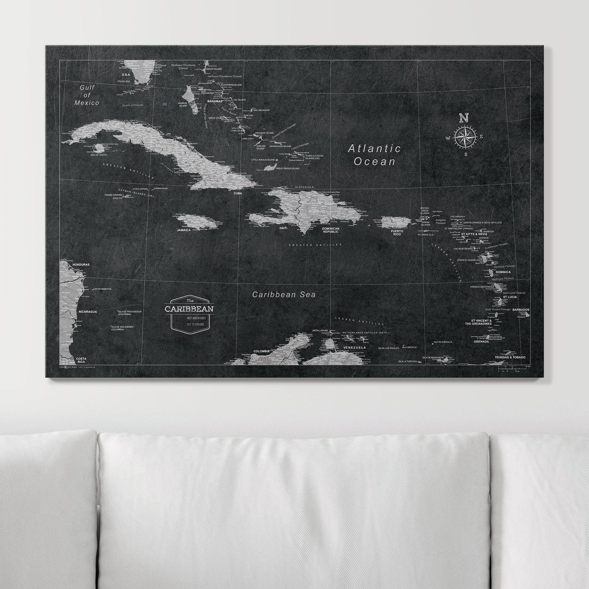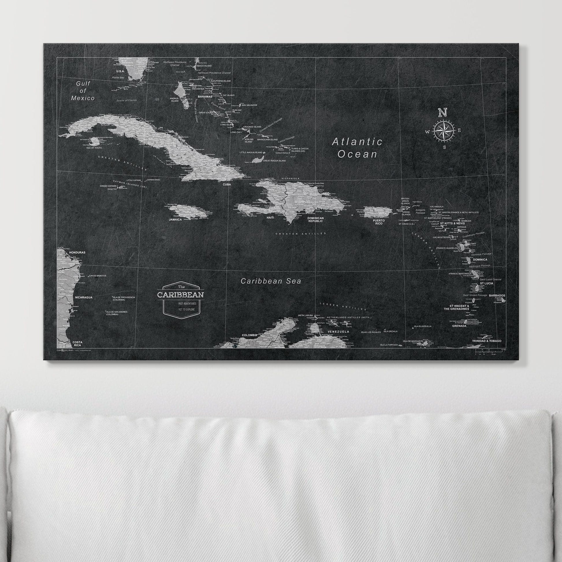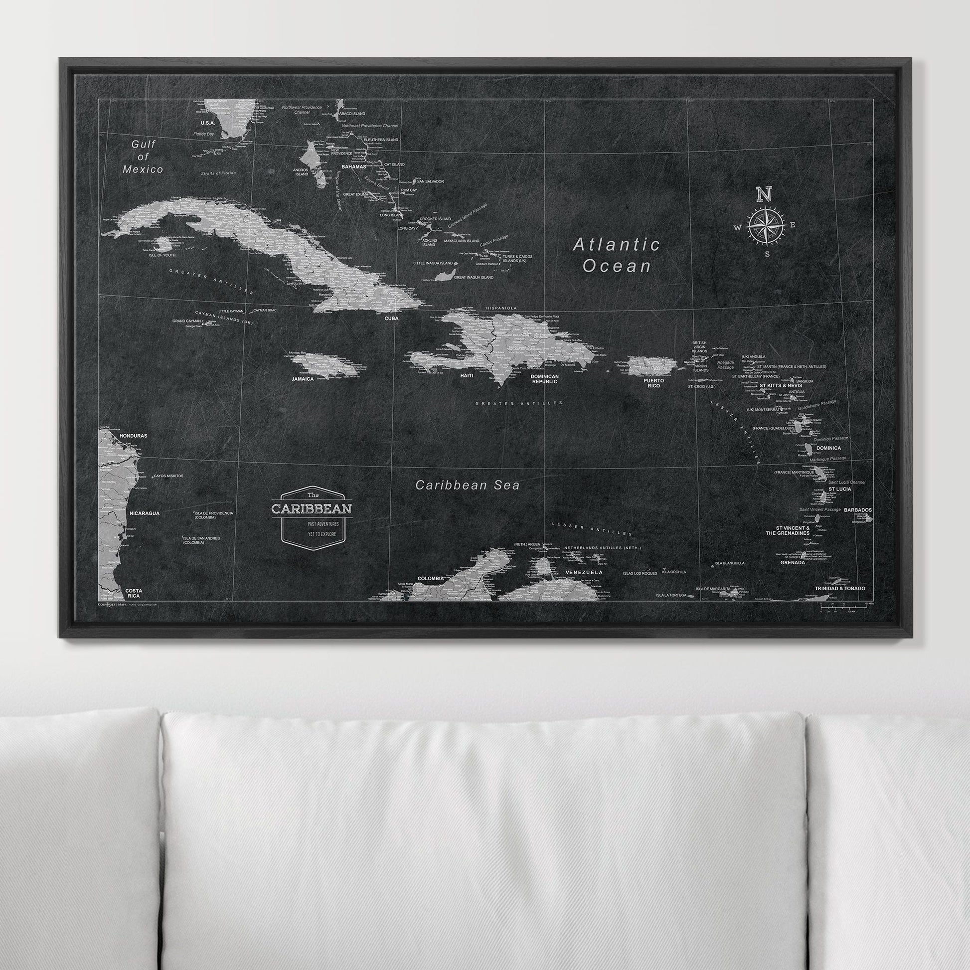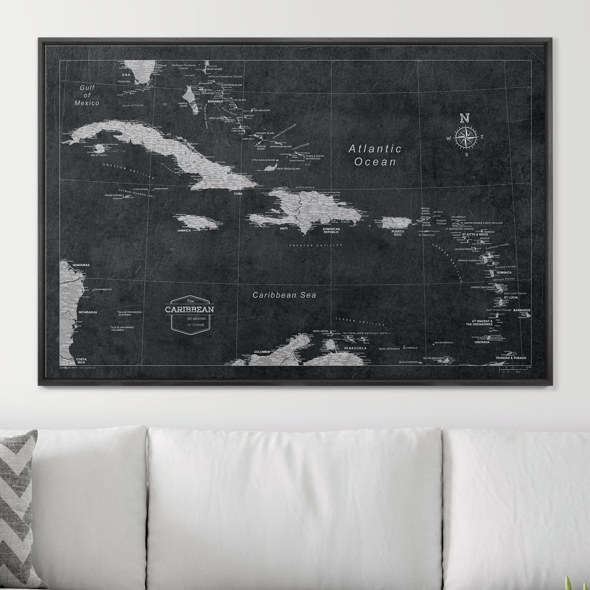 Push Pin Caribbean Map: Modern Slate (Pins Included)