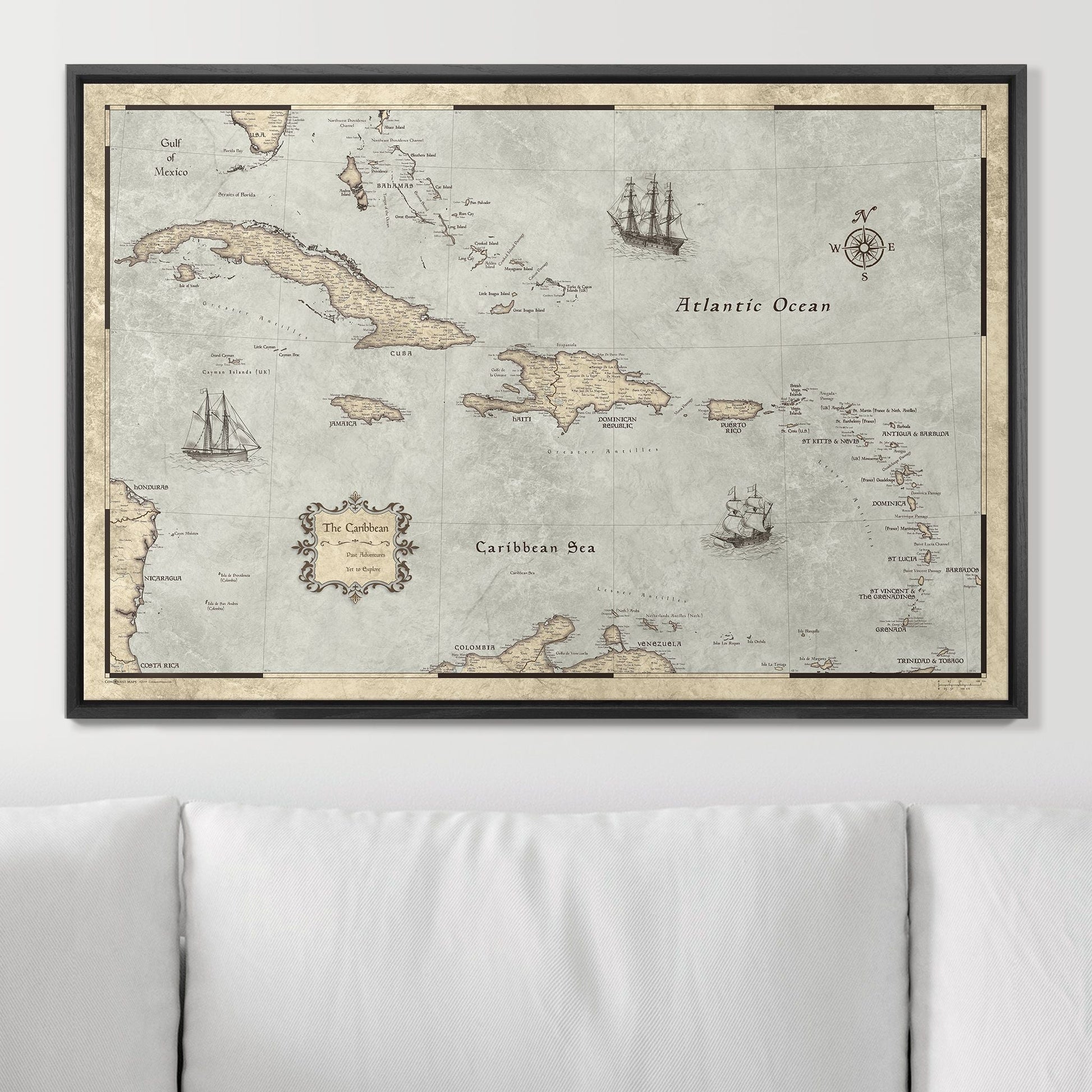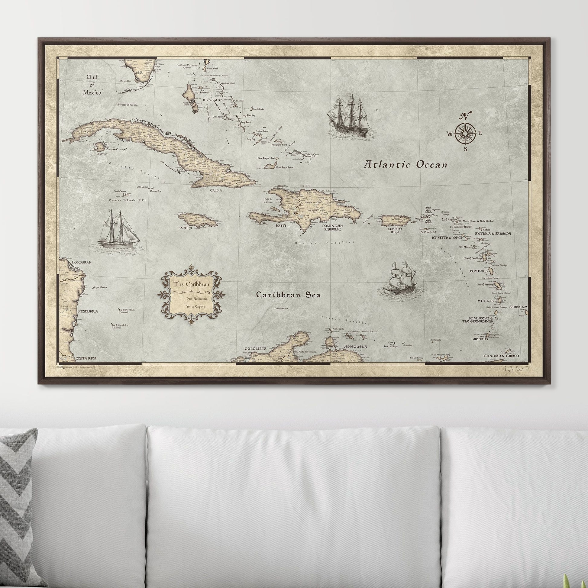 Push Pin Caribbean Map: Rustic Vintage (Pins Included)