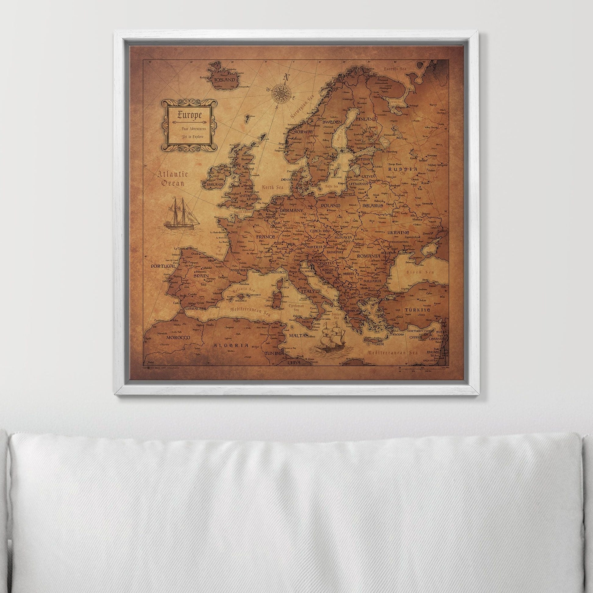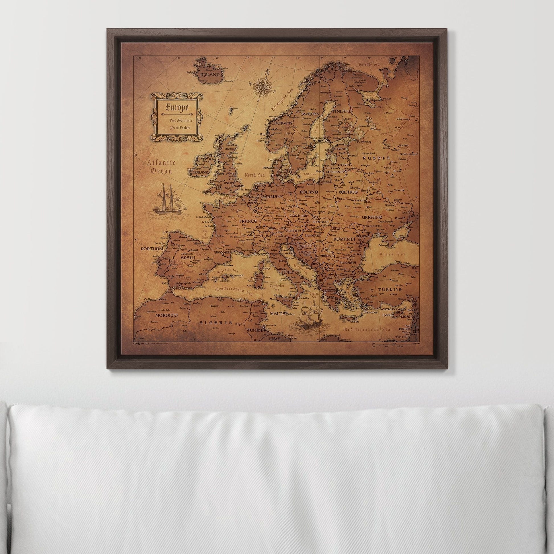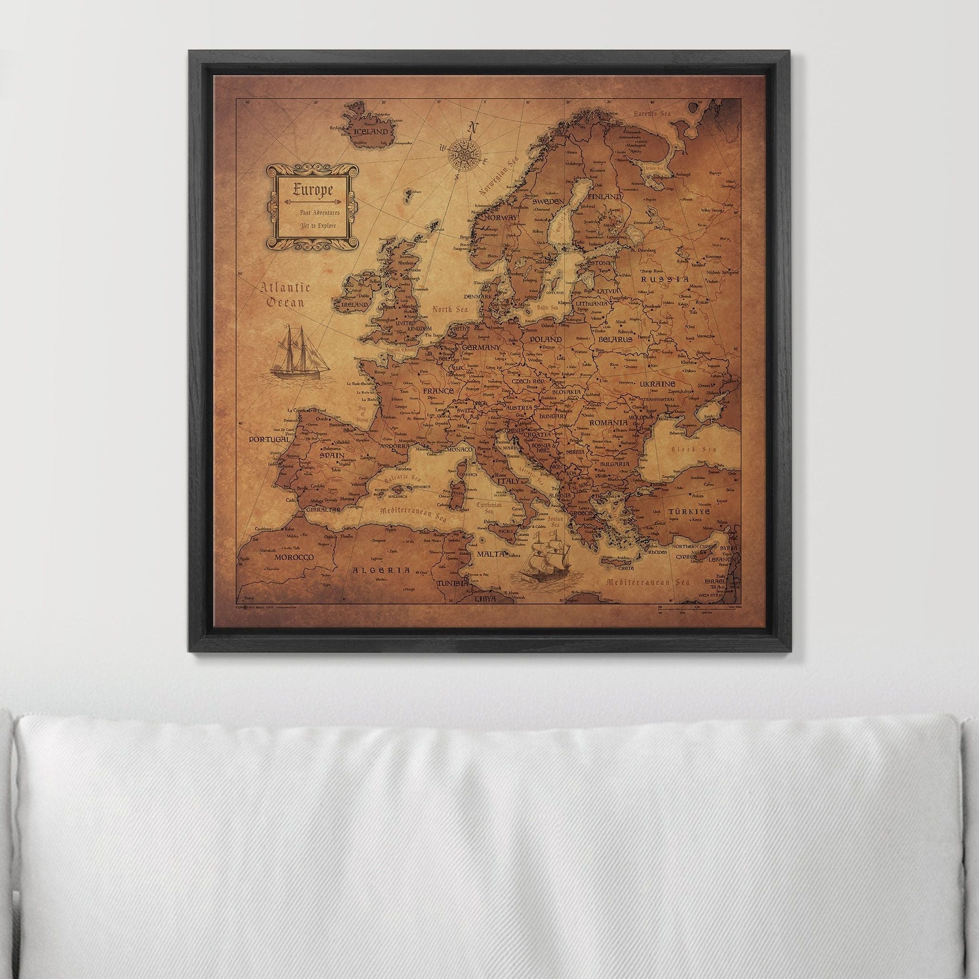 Push Pin Europe Map: Golden Aged (Pins Included)