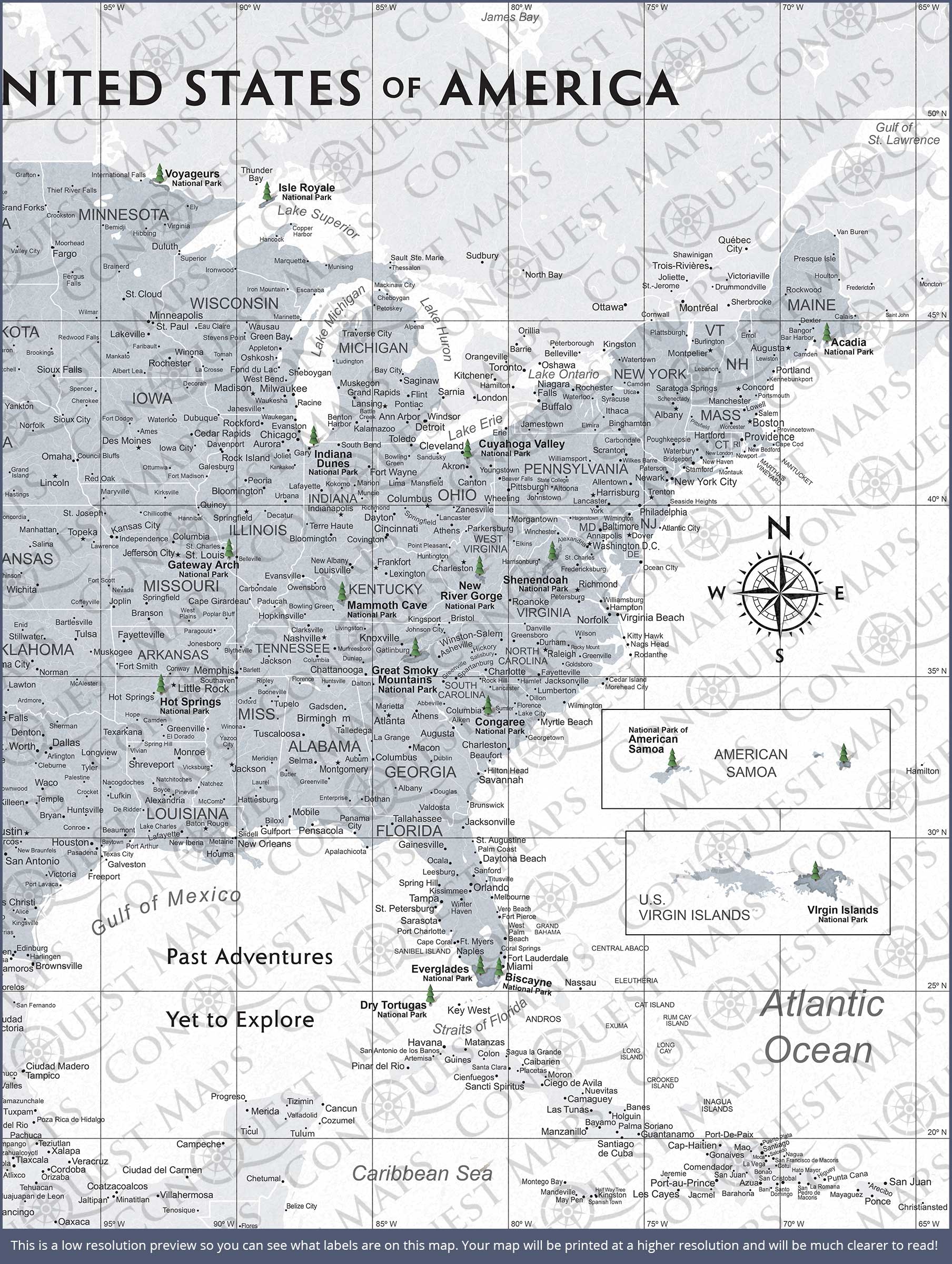Push Pin National Parks Map: Light Grey (Pins Included)