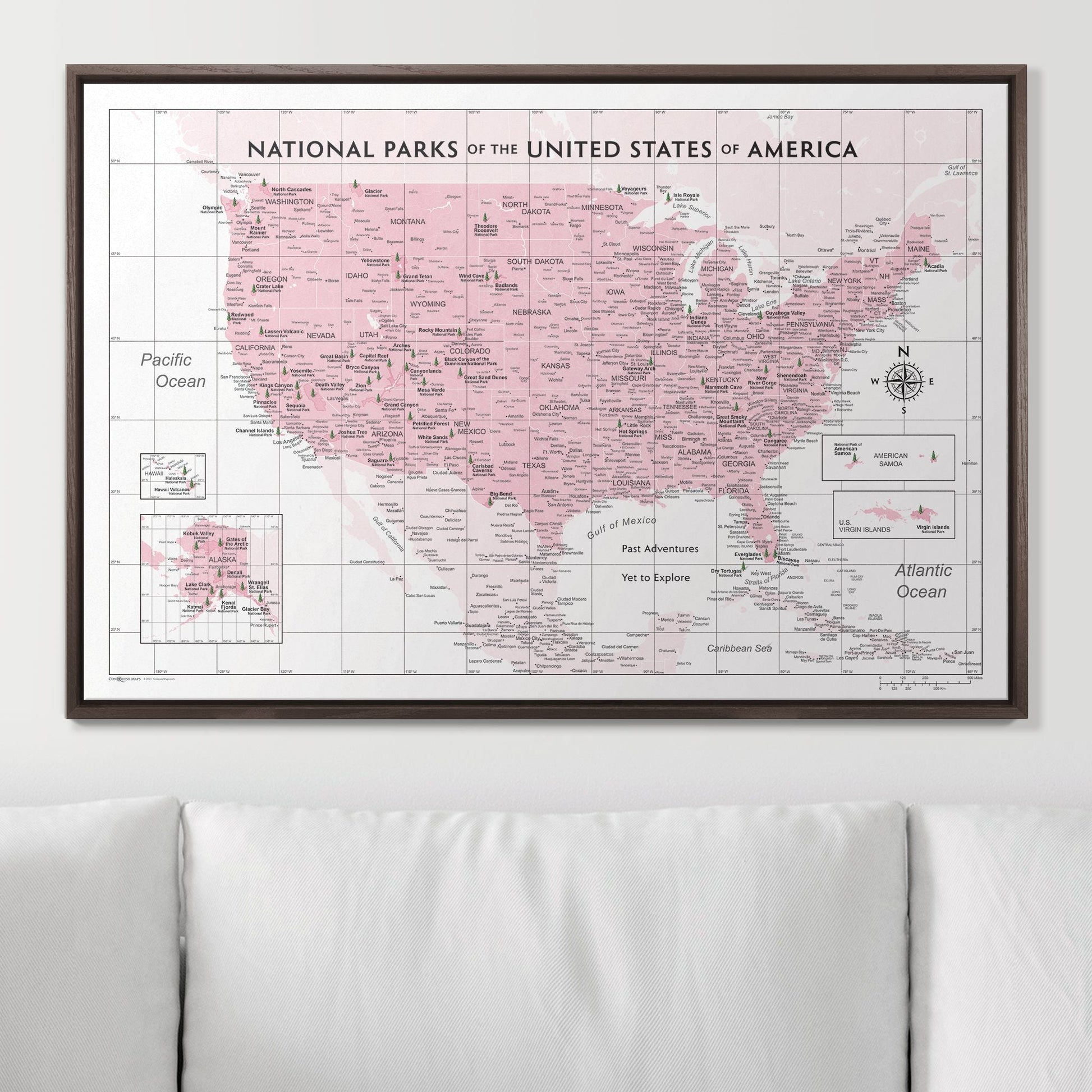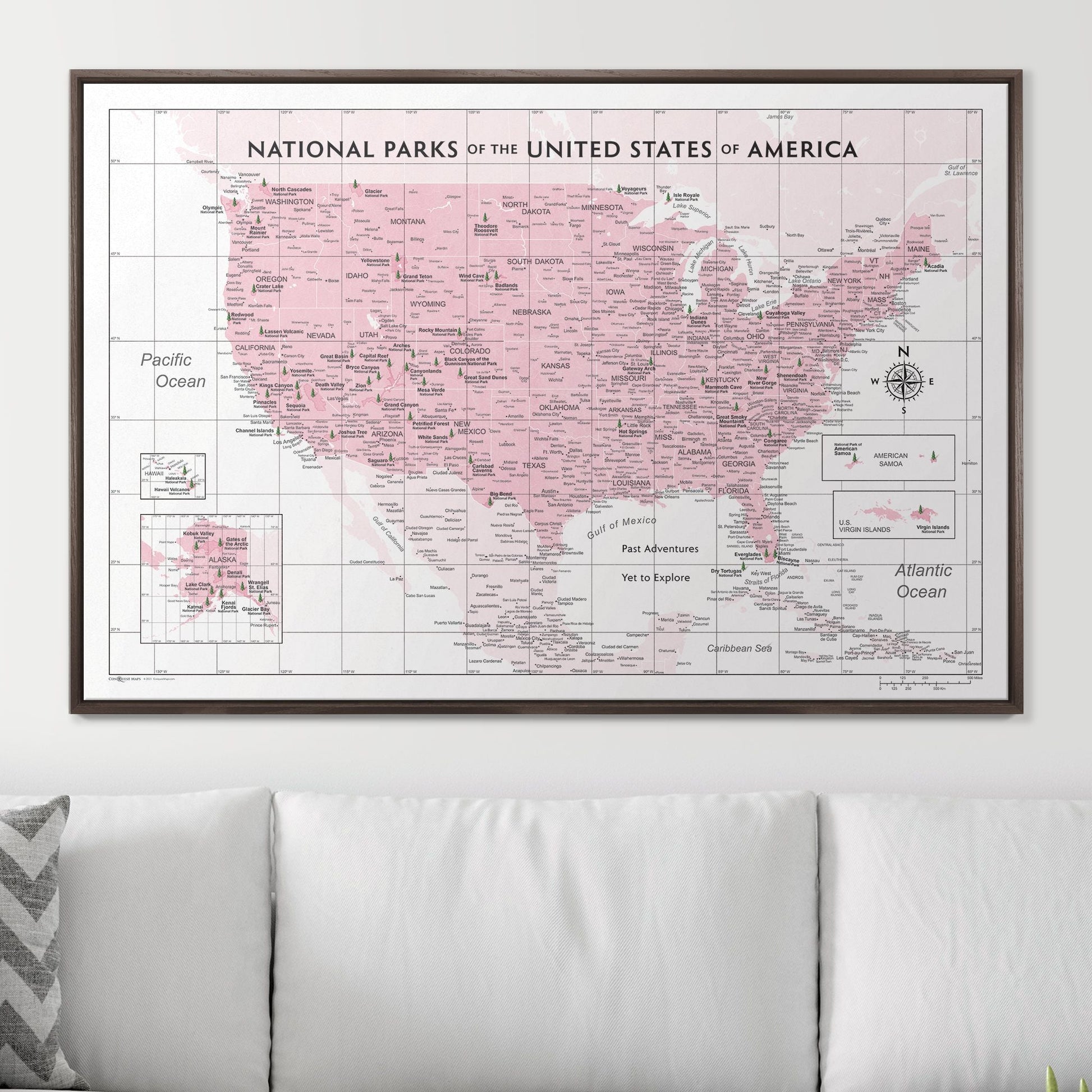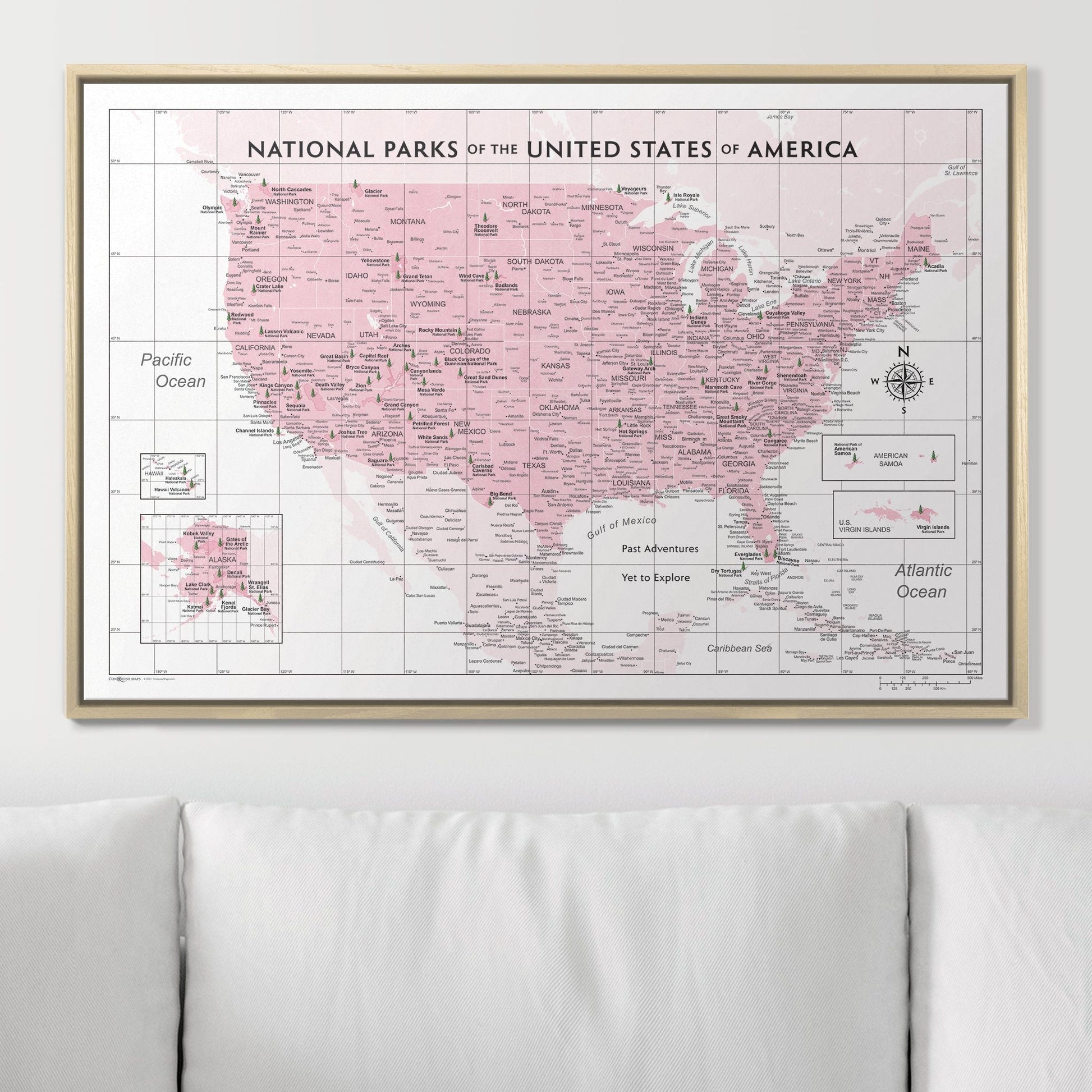 Featuring 63 parks that capture the natural beauty of our country’s most beautiful landscapes, these high-quality, interactive maps include two boxes of 50 colorful push pins so you can pin your way across the country. Made to order by hand, right here in America, our maps are designed with durable wrapped canvas and include all necessary hanging hardware for display.