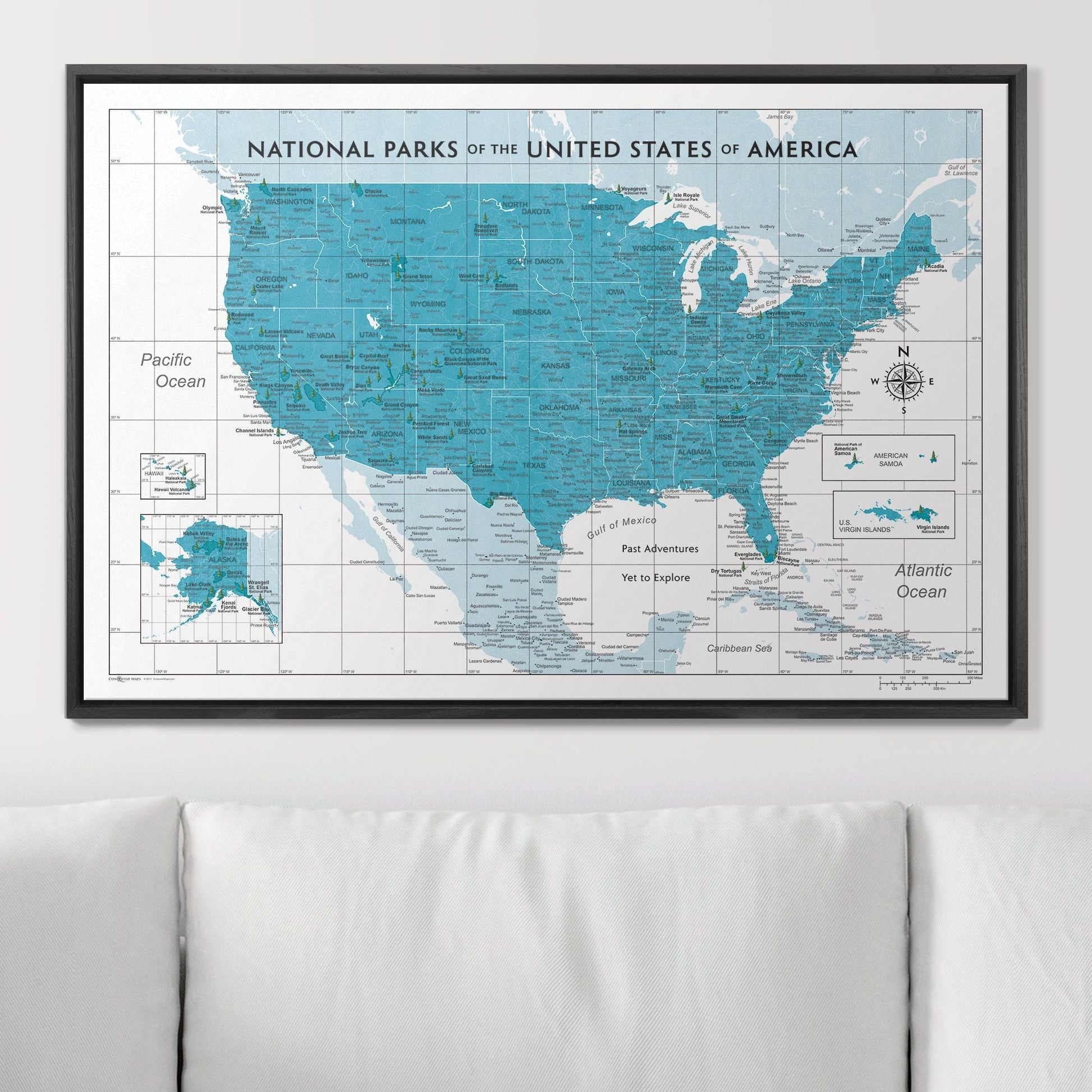 Featuring 63 parks that capture the natural beauty of our country’s most beautiful landscapes, these high-quality, interactive maps include two boxes of 50 colorful push pins so you can pin your way across the country. Made to order by hand, right here in America, our maps are designed with durable wrapped canvas and include all necessary hanging hardware for display.