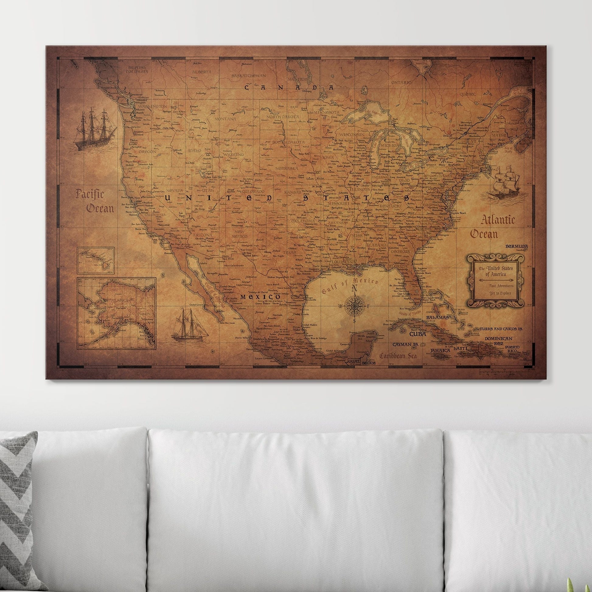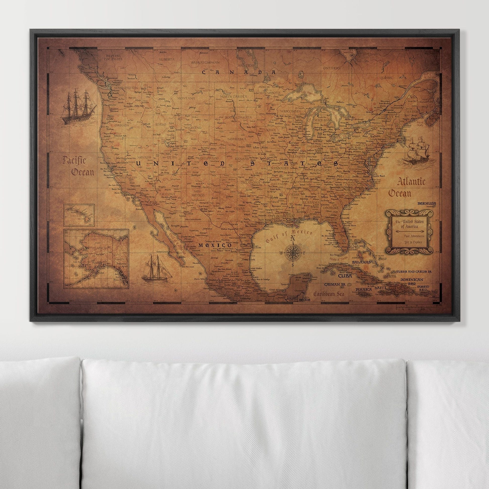 Push Pin USA Map: Golden Aged (Pins Included)