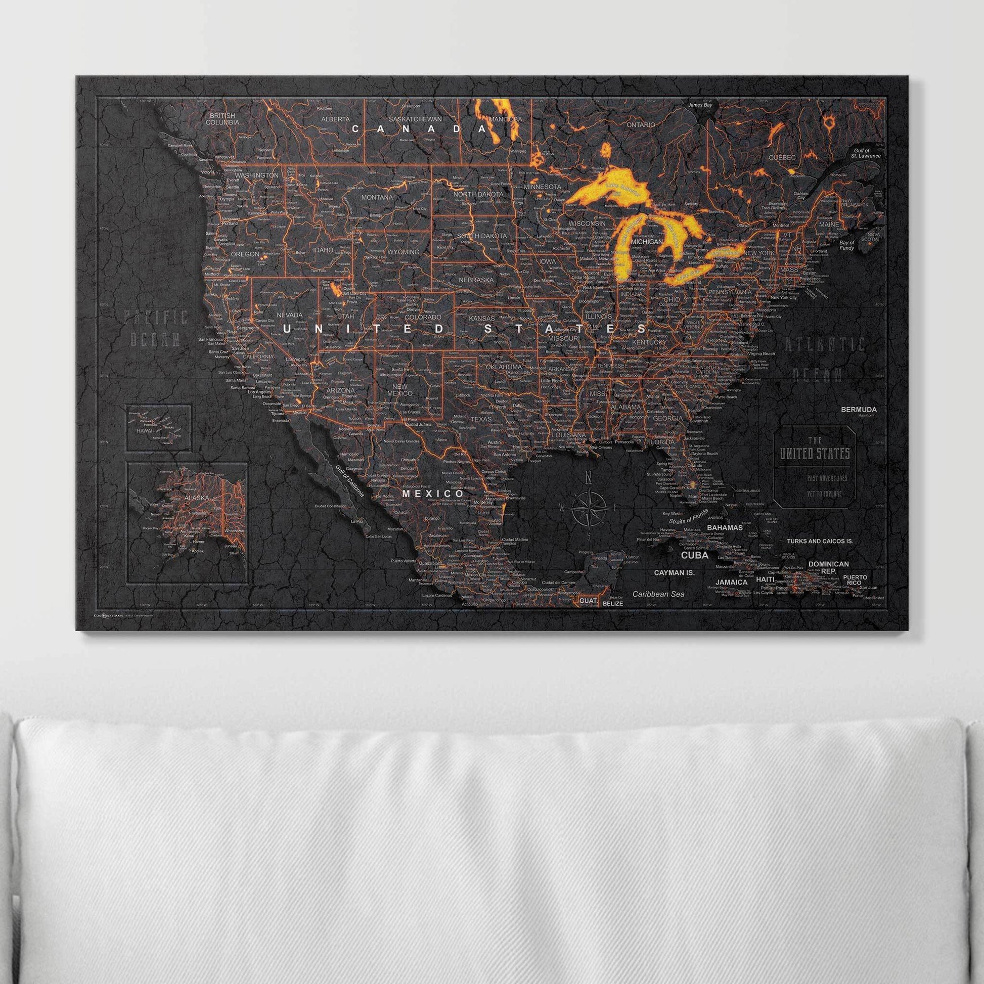 Push Pin USA Map: Obsidian Inferno (Pins Included)