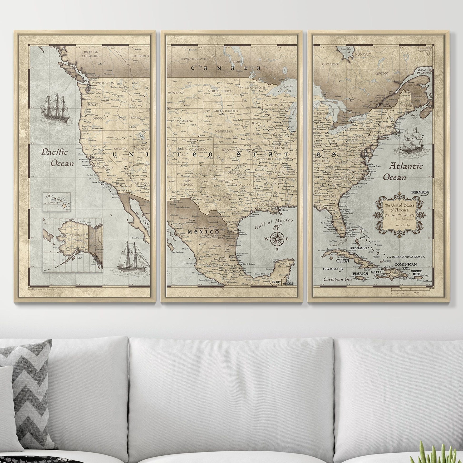 Push Pin USA Map: Rustic Vintage (Pins Included)