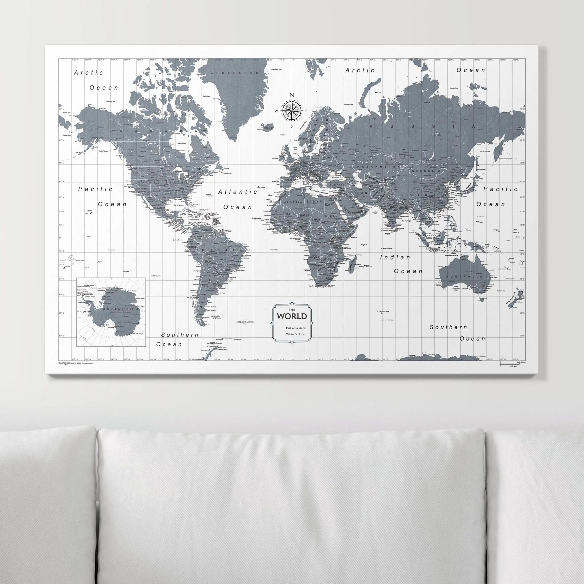 Push Pin World Map: Dark Gray (Pins Included)