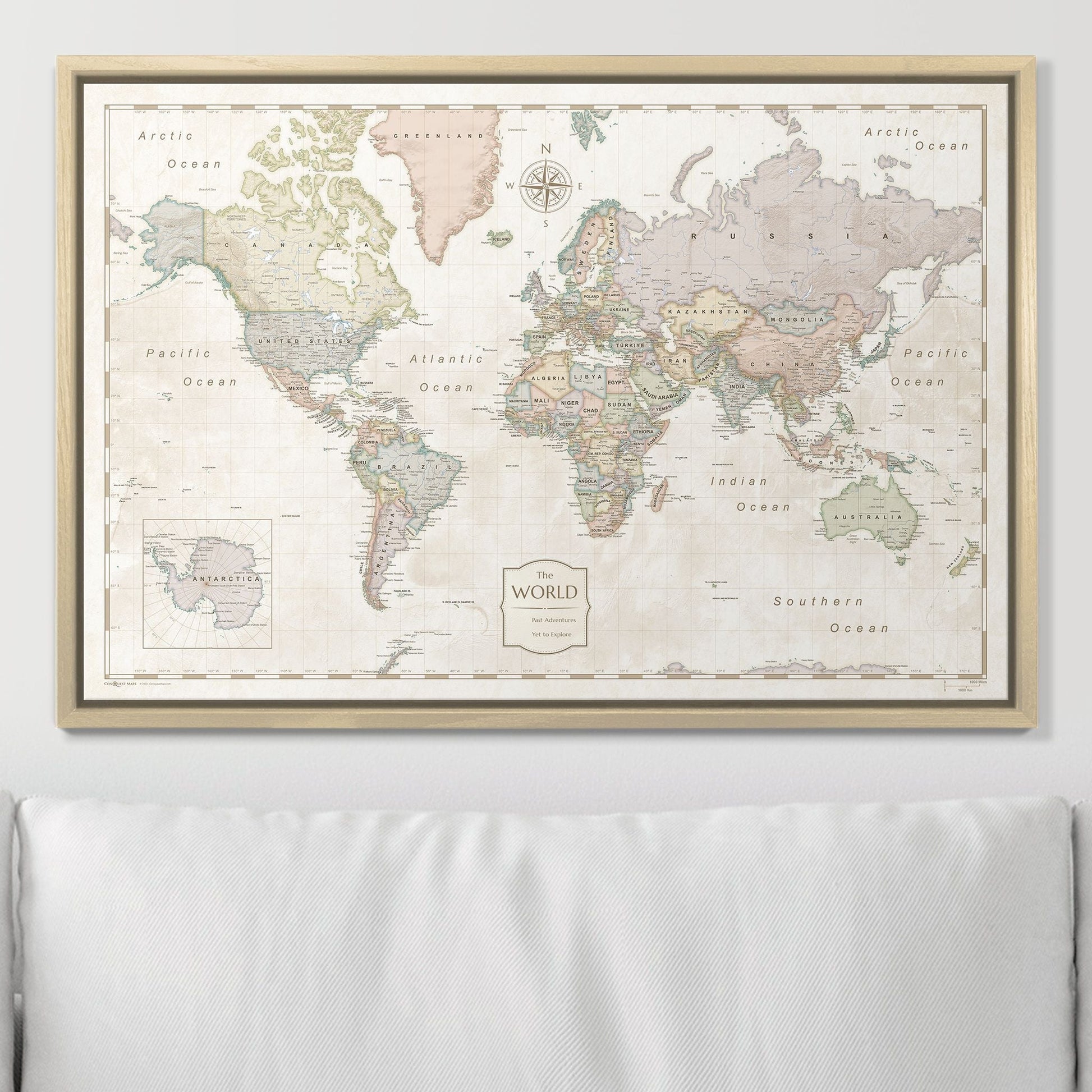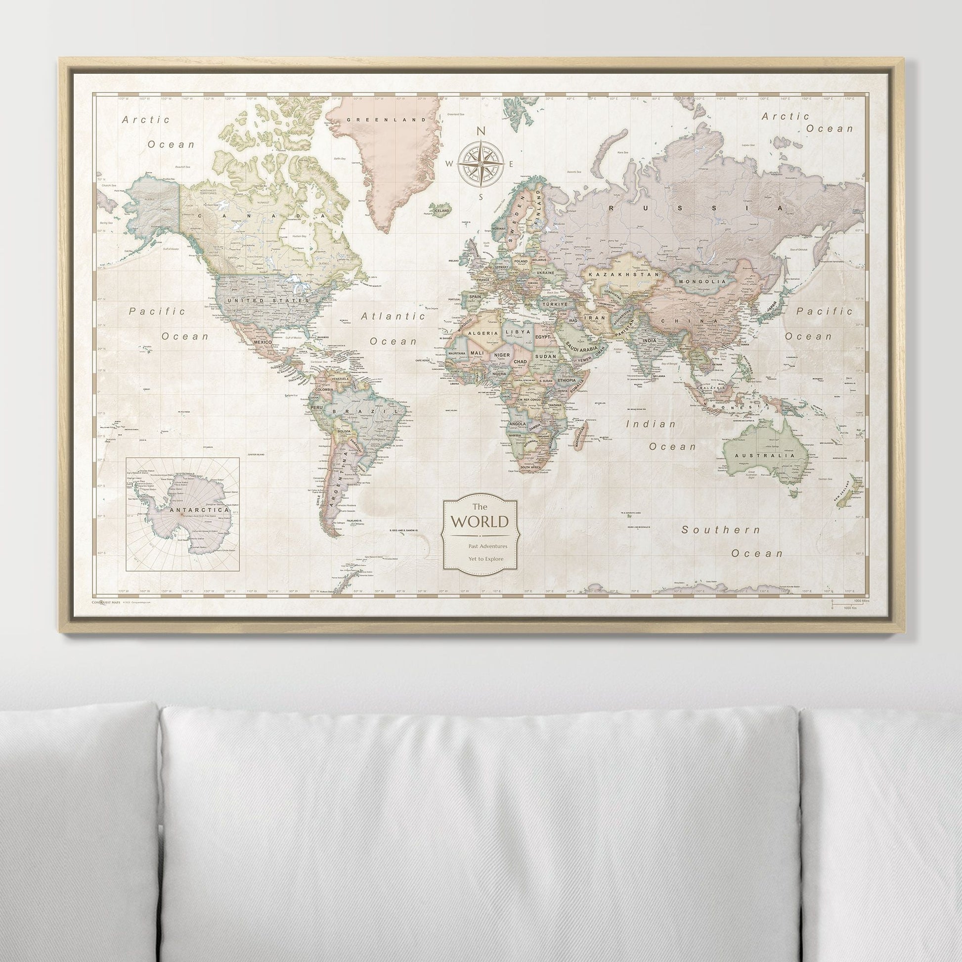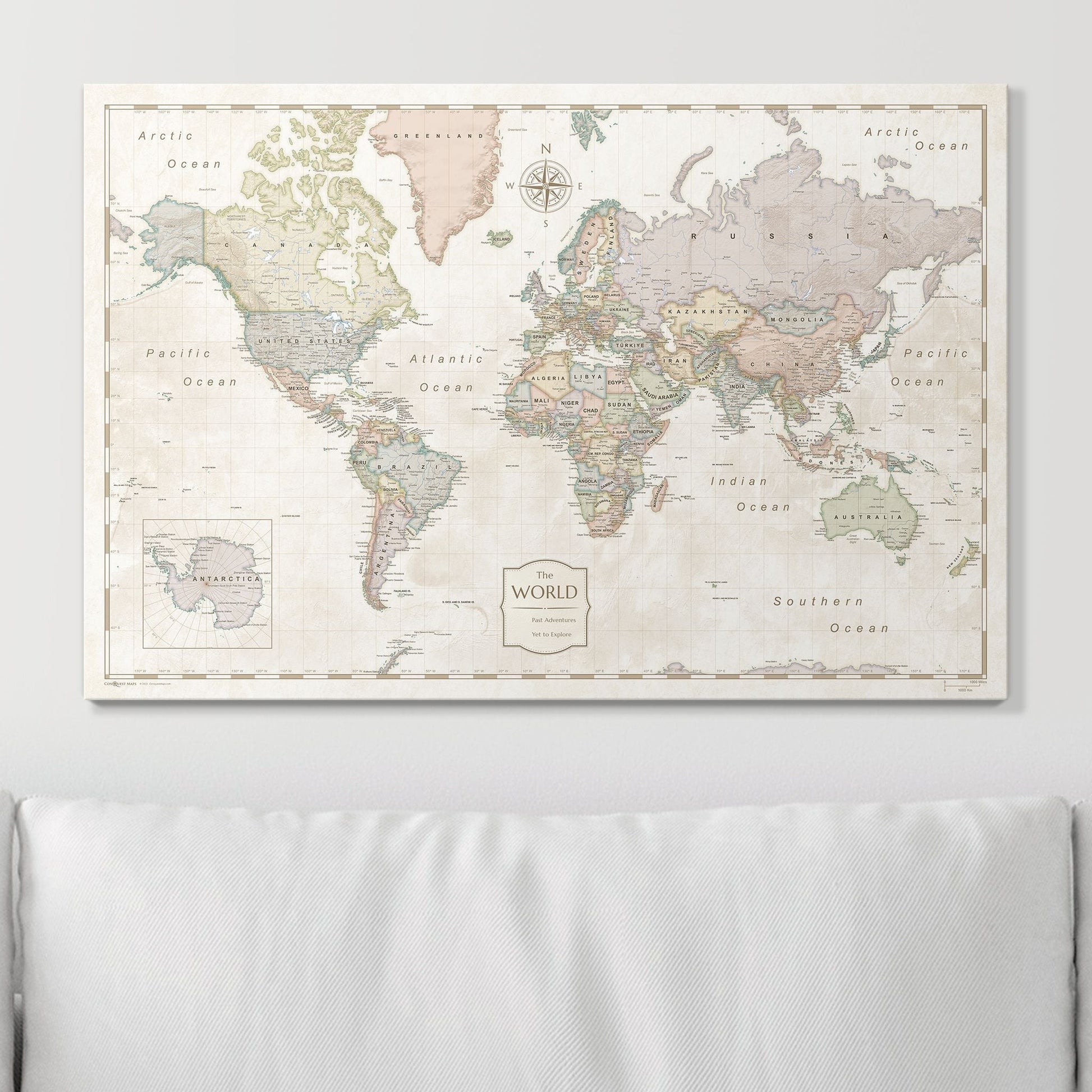 Crafted with meticulous attention to detail, this map includes up-to-date map data and only the highest clarity inks, showcasing cities and countries clearly. All of our maps are printed on the most durable, high-quality canvas available to create a sophisticated print that will be a timeless addition to your home or office.