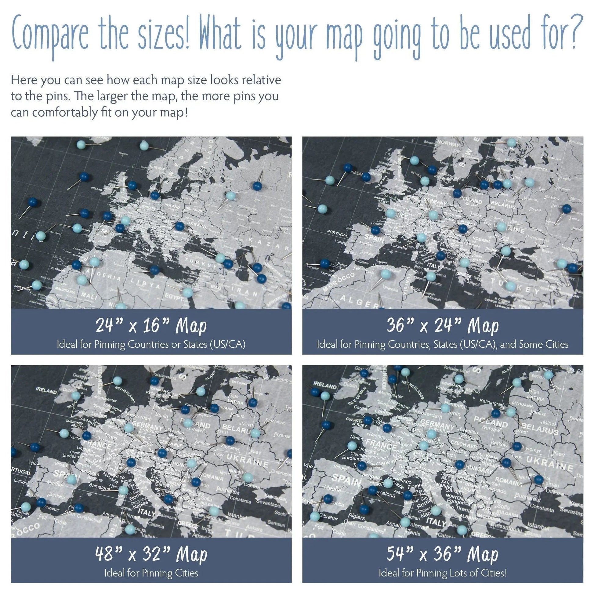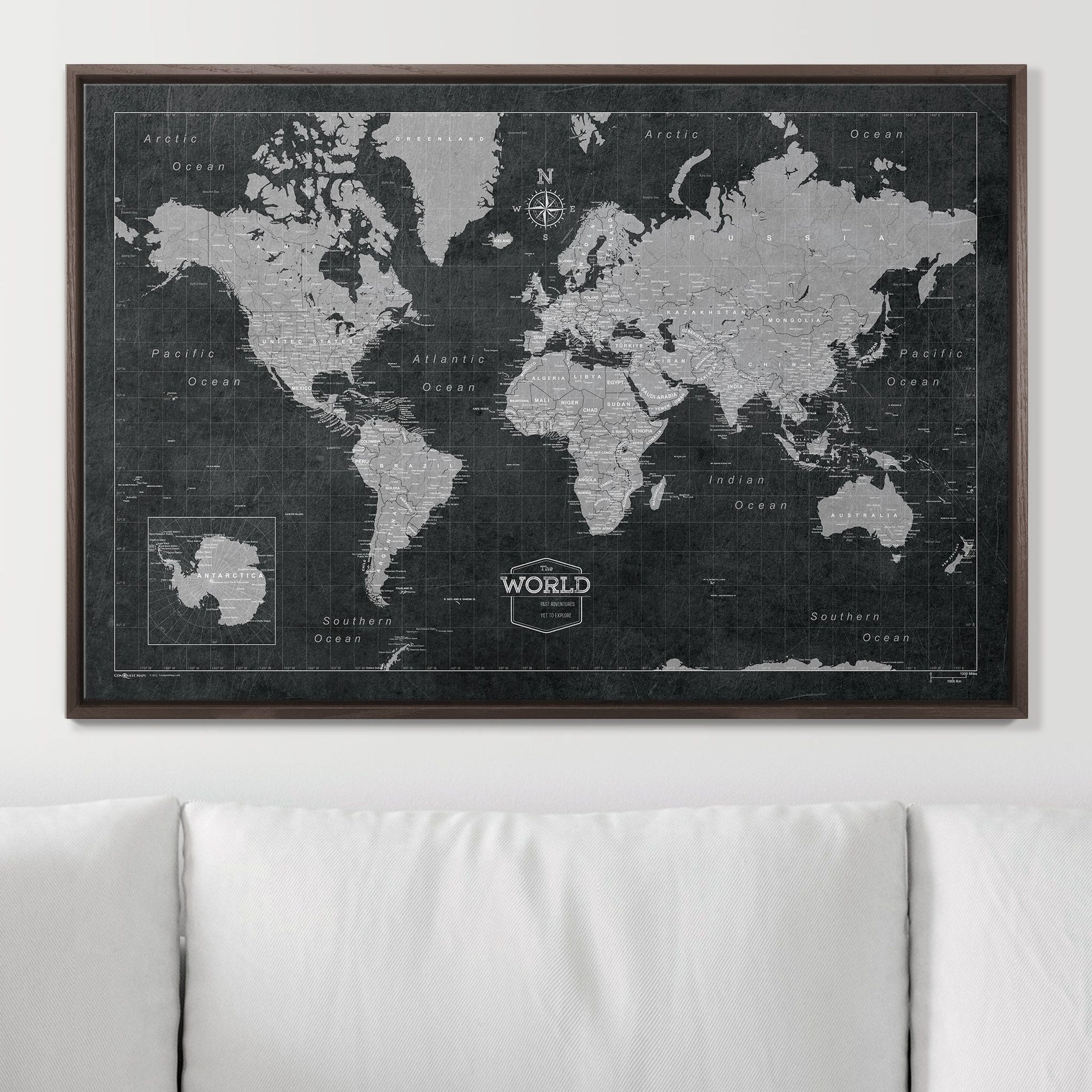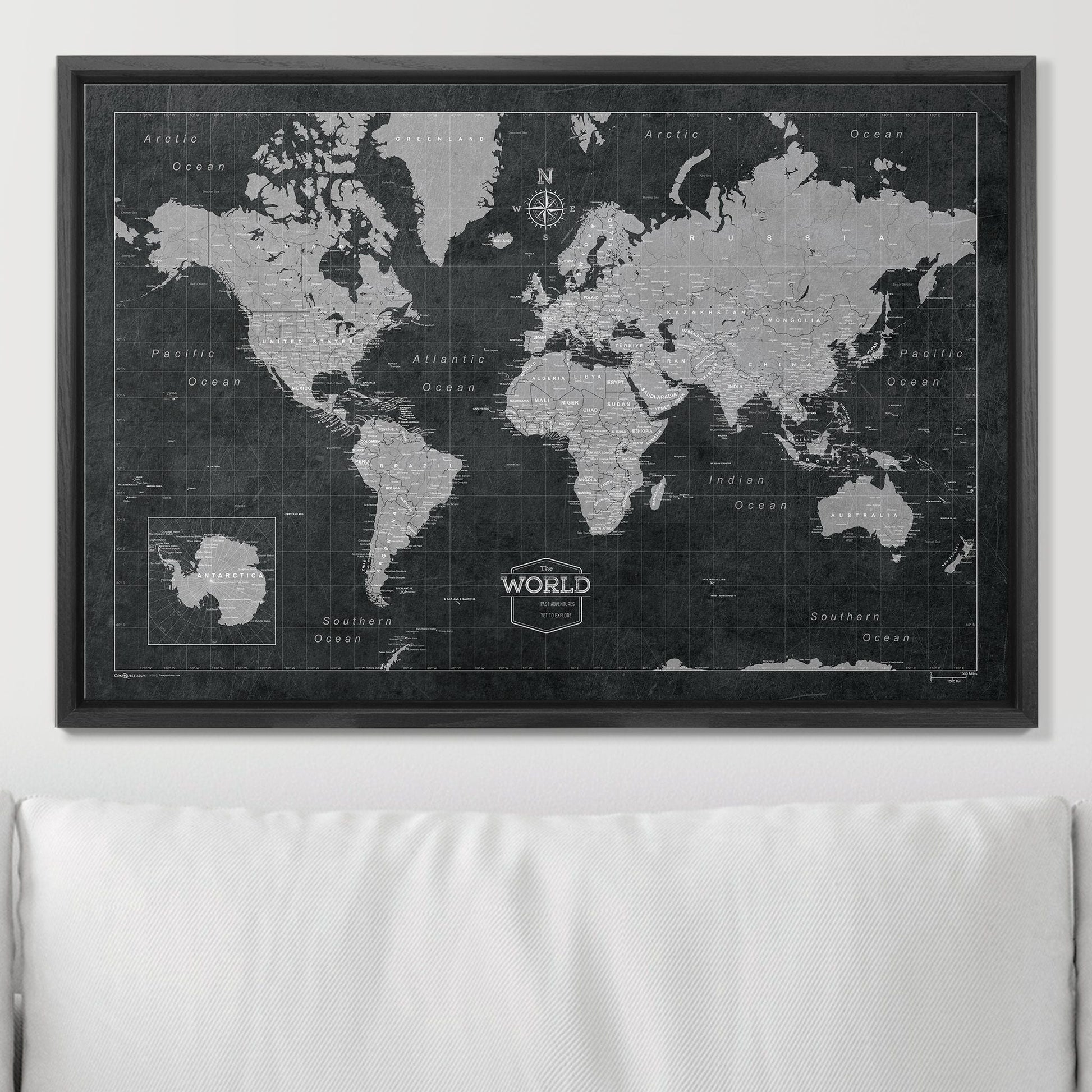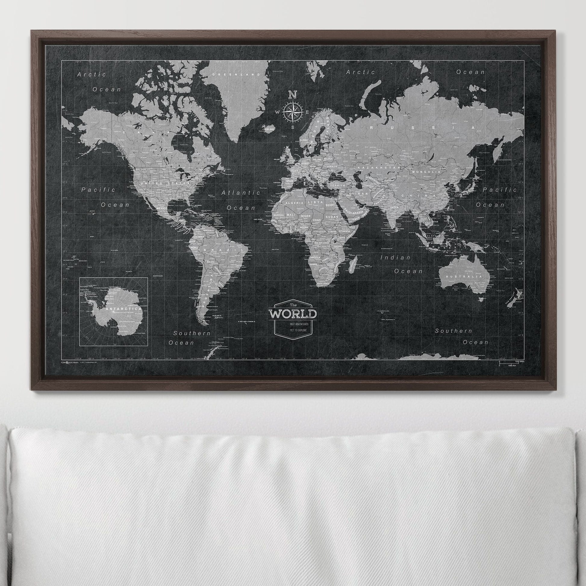 Push Pin World Map: Modern Slate (Pins Included)