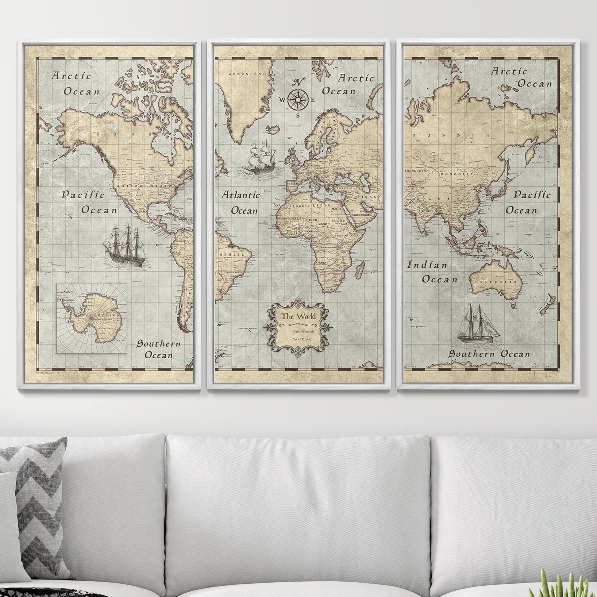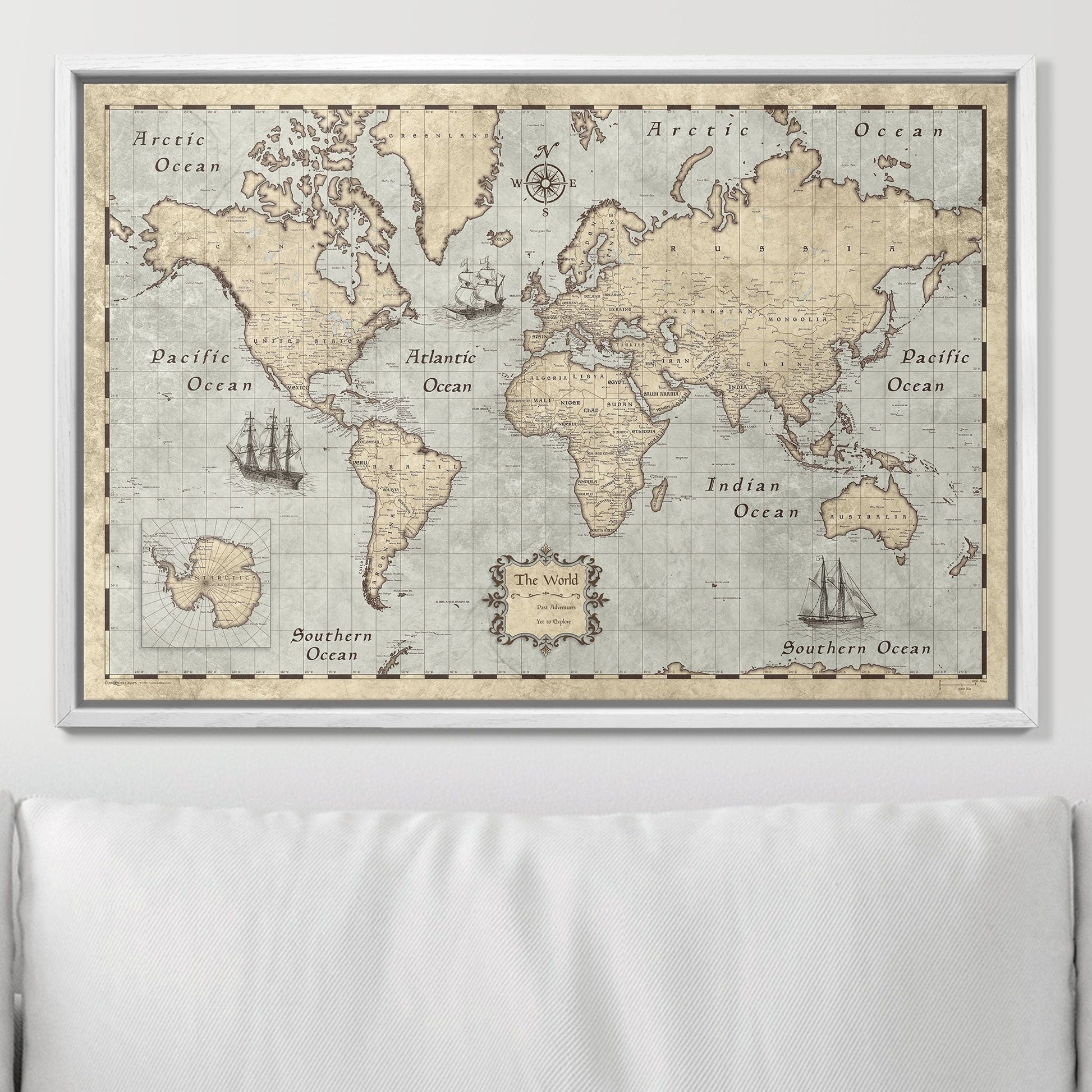 Push Pin World Map: Rustic Vintage (Pins Included)