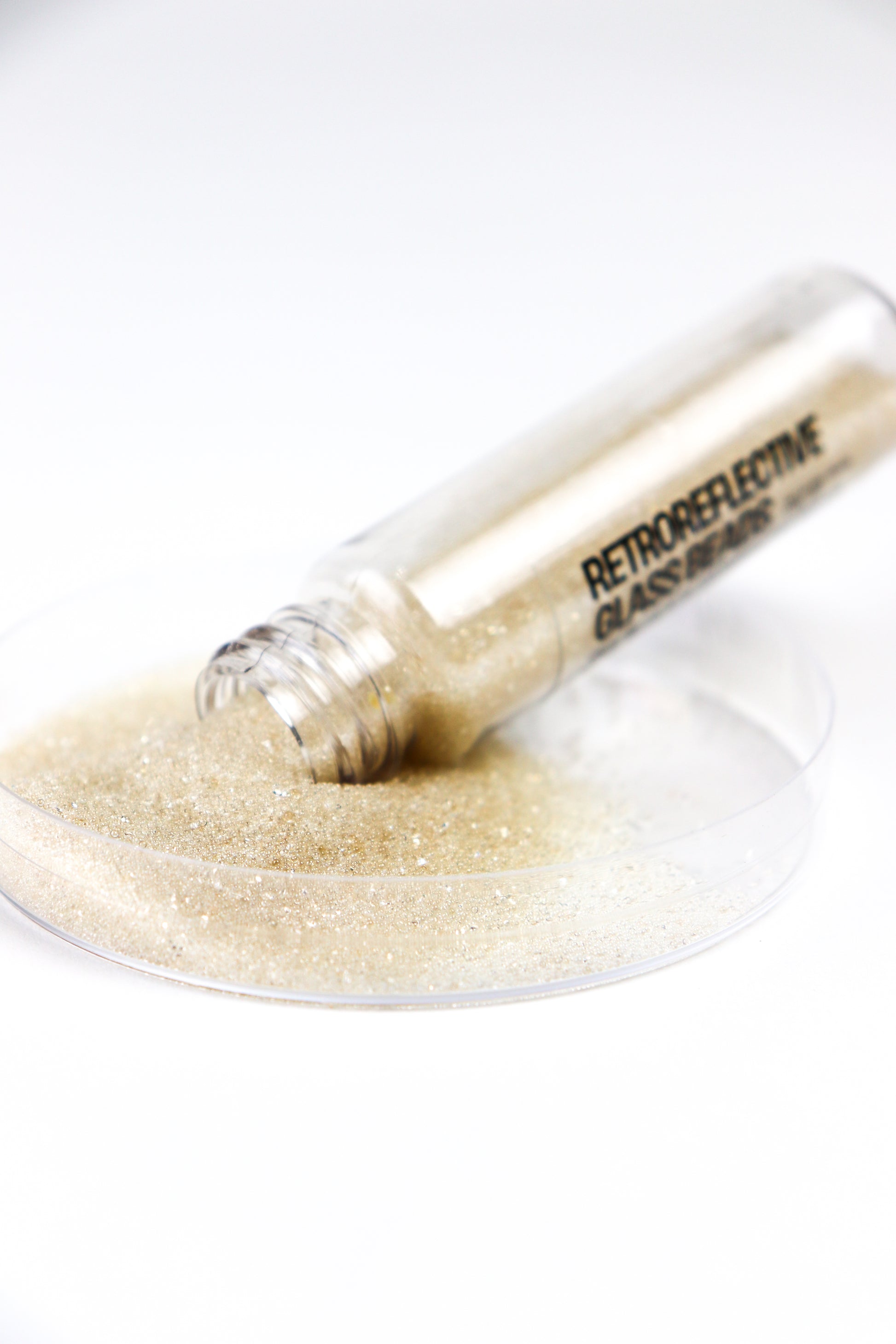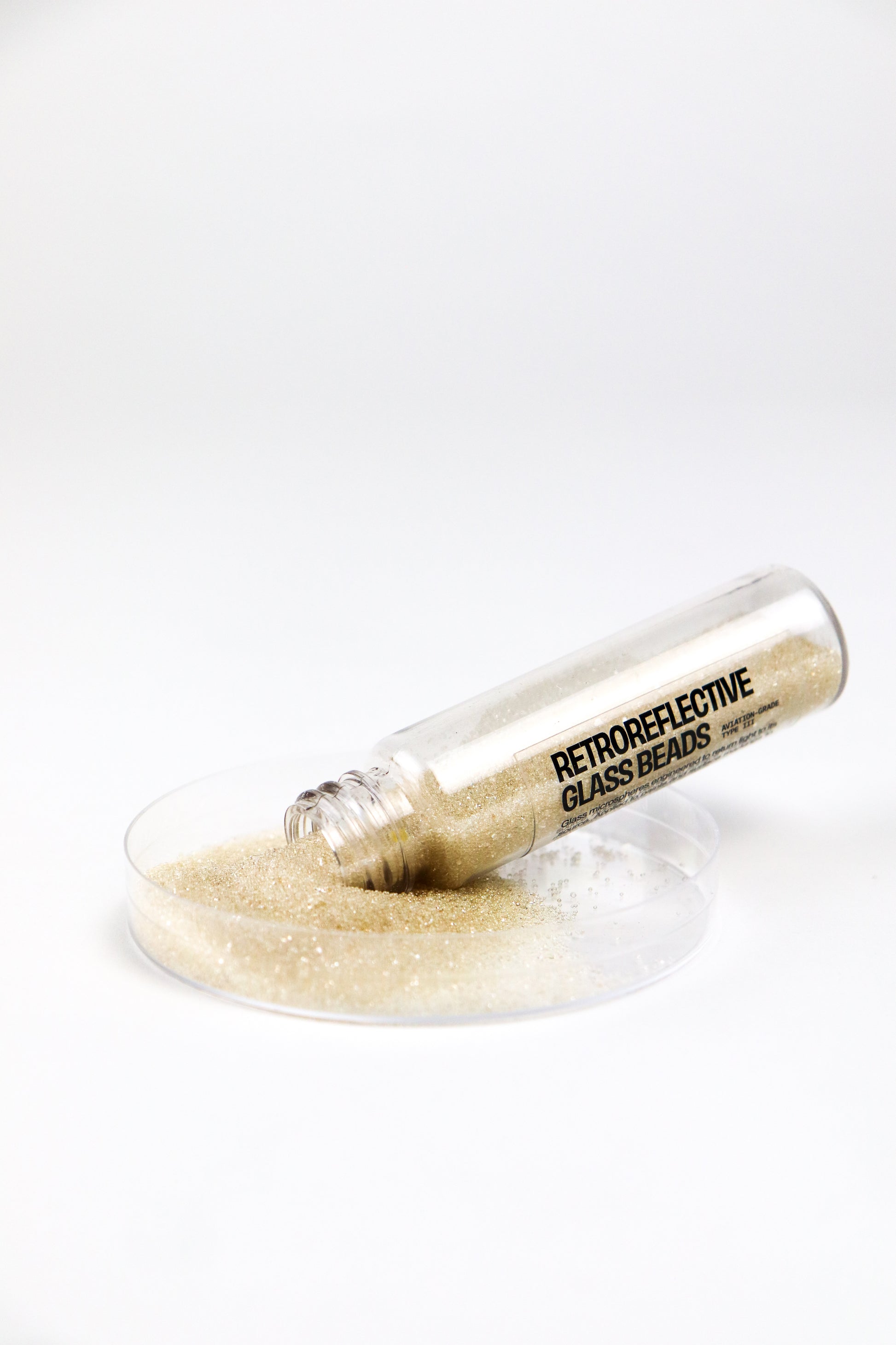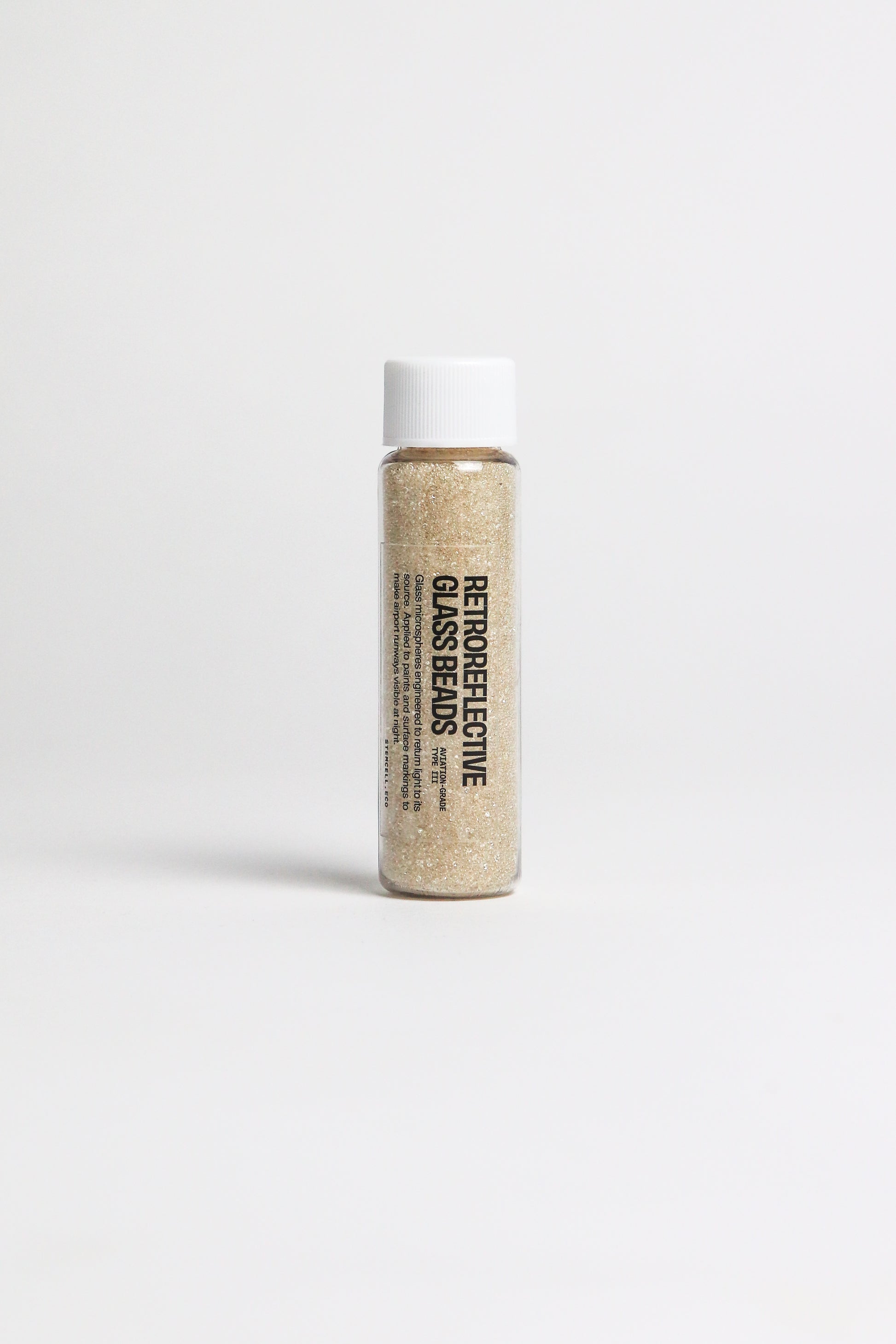 This tube contains type III glass beads, the highest grade of retroreflective beads which are designed specifically for marking airport runways and taxiways. Mix into a binder or add a coating of beads to a freshly painted object to create an airport-grade retroreflective surface.