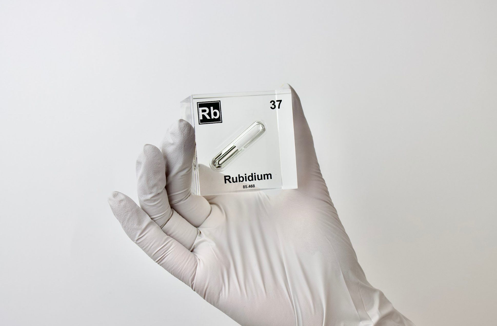 Rubidium's atomic number is 37 and its symbol is Rb. It is a very soft, silvery-white metal in the alkali metal group, and it is the first in the group to have a density higher than water. Rubidium is easily vaporized and has a convenient spectral absorption range, making it a frequent target for laser manipulation of atoms. However, it cannot be stored under atmospheric oxygen, as a highly exothermic reaction will ensue, sometimes even resulting in the metal catching fire.