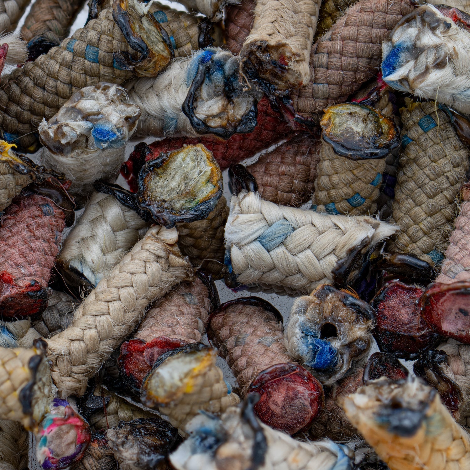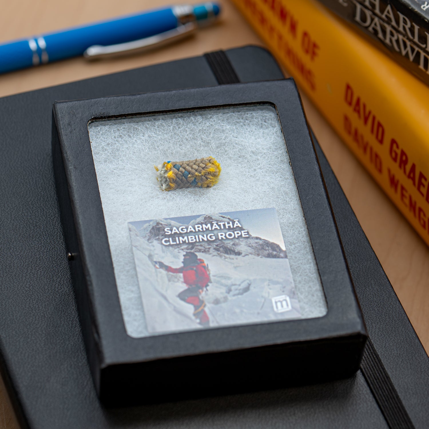 This specimen is a sample of climbing rope retrieved during a cleanup effort on Mount Everest. It first appeared as a specimen in the Fifth Edition Mini Museum and we're very excited to debut it as a solo specimen. It comes in a classic, glass-topped riker display box measuring 4 1/2" x 3 1/2". A small information card is included, which also serves as the certificate of authenticity.